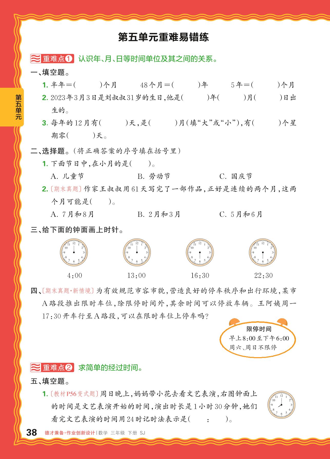 2024春下册三年级数学苏教版 第五单元重难易错练