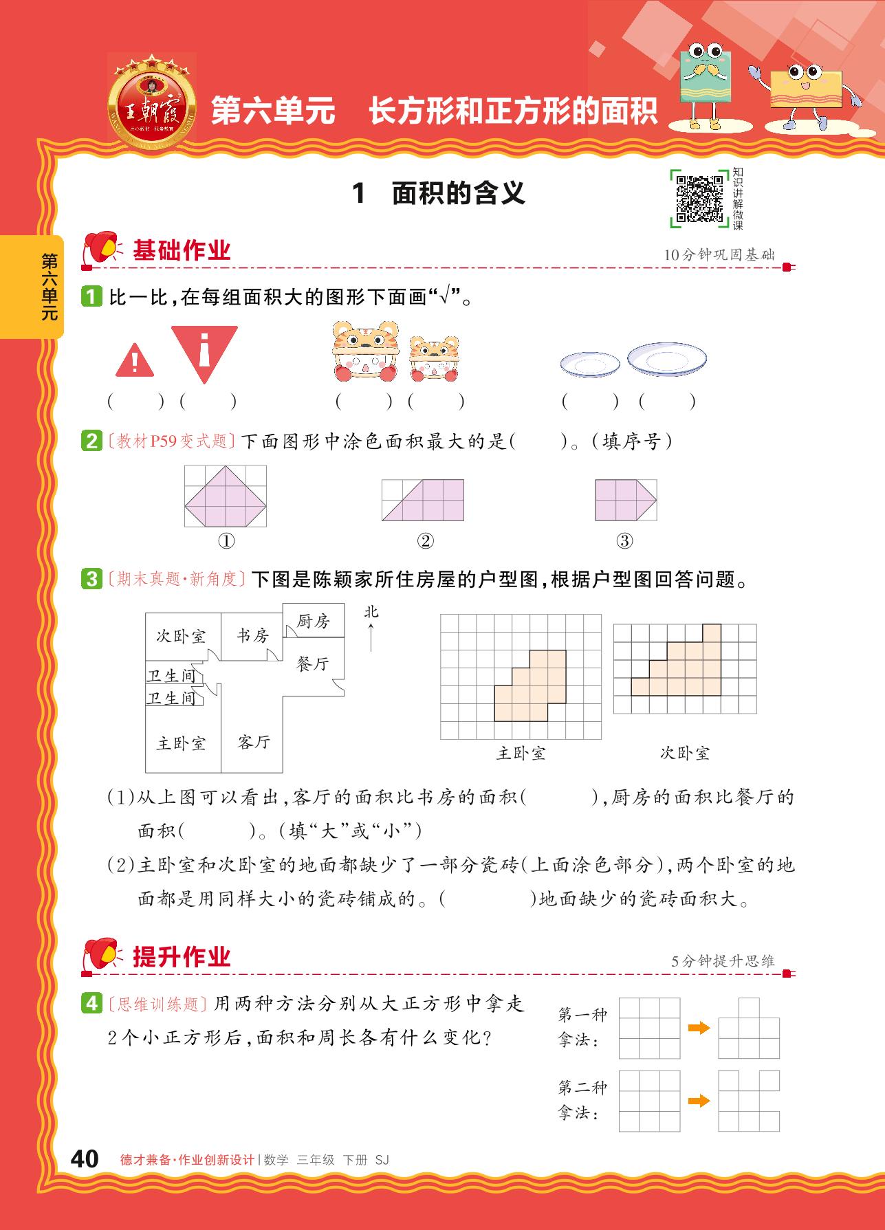 2024春下册三年级数学苏教版 第六单元 长方形和正方形的面积——1. 面积的含义