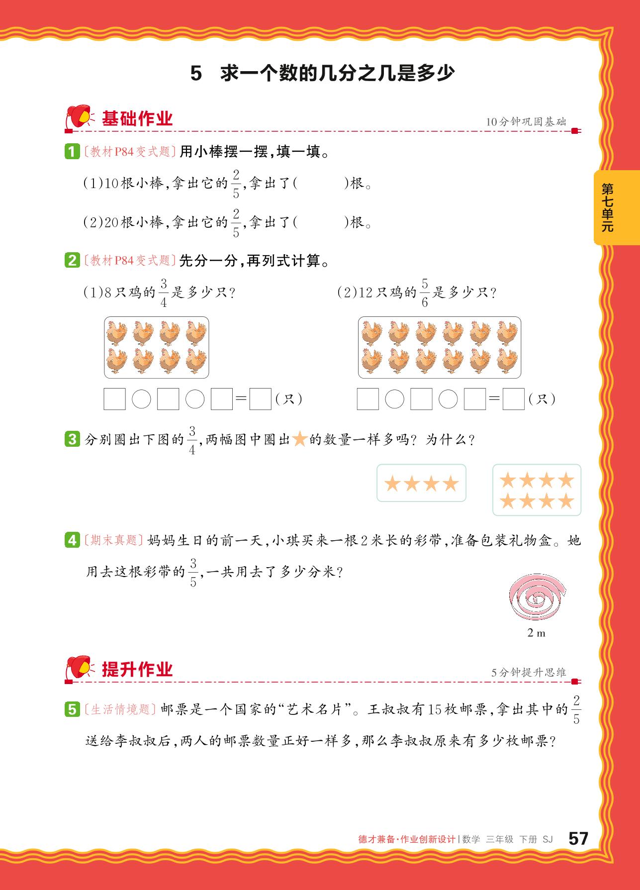 2024春下册三年级数学苏教版 第七单元 分数的初步认识(二)——5. 求一个数的几分之几是多少