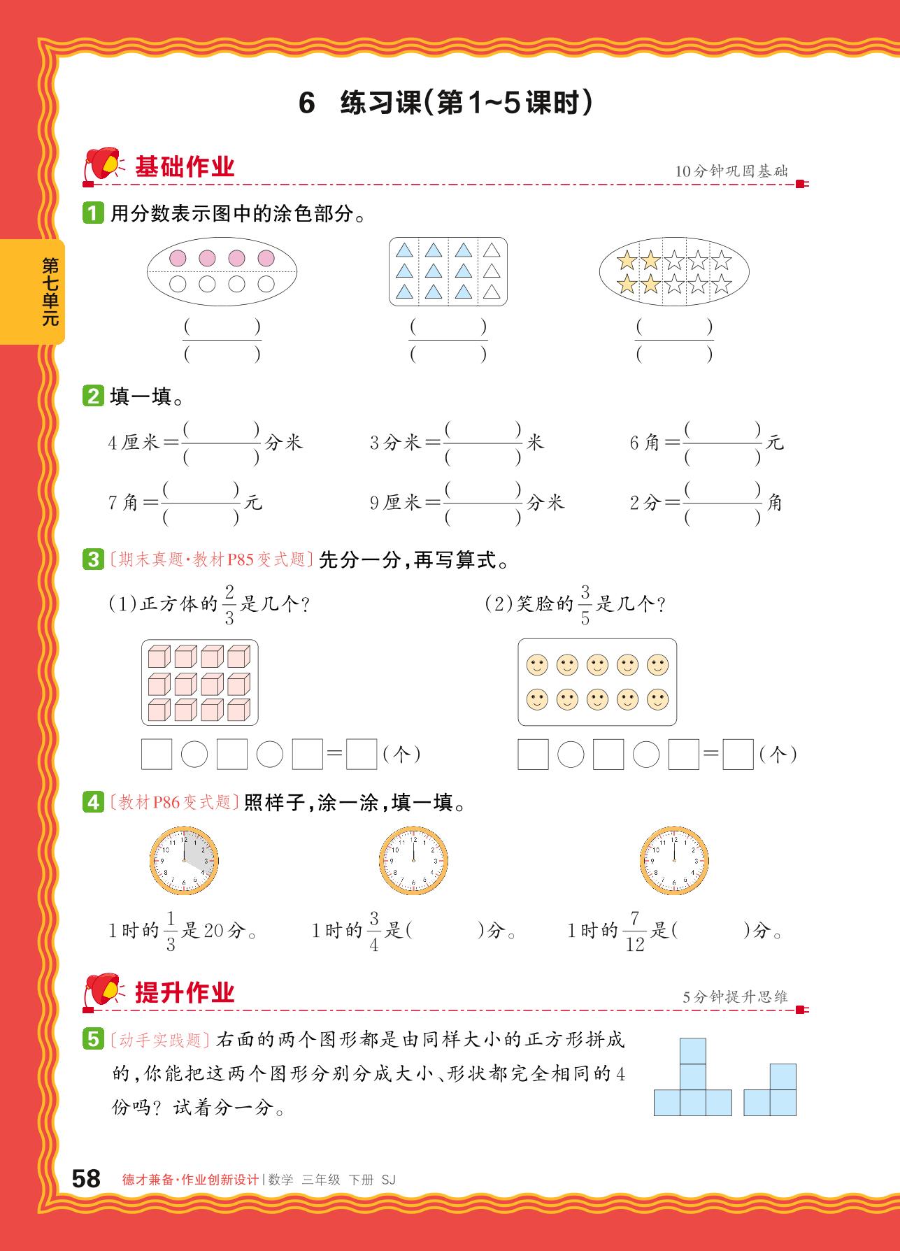 2024春下册三年级数学苏教版 第七单元分数的初步认识(二)练习课