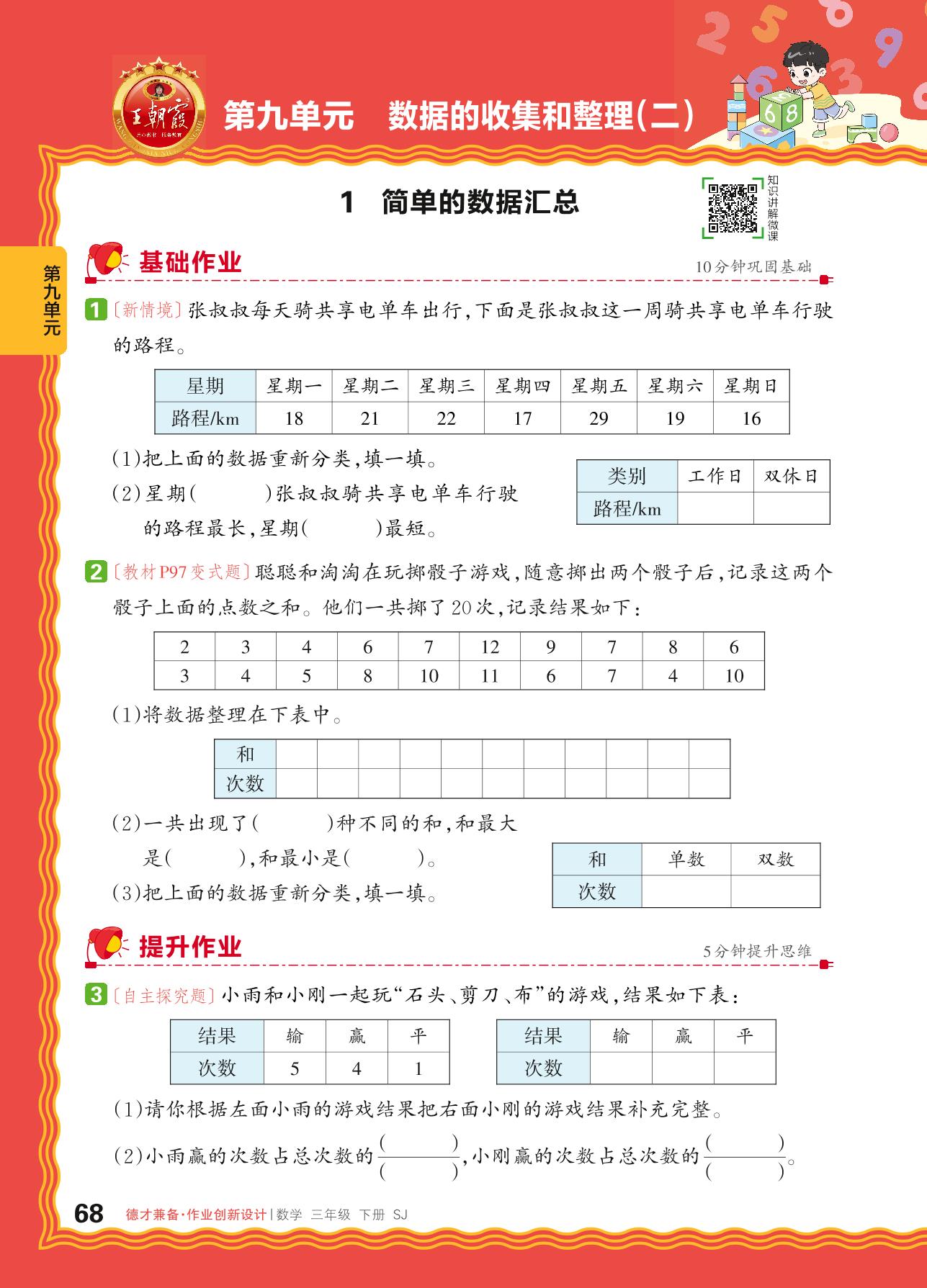 2024春下册三年级数学苏教版 第九单元 数据的收集和整理(二)——1. 简单的数据汇总