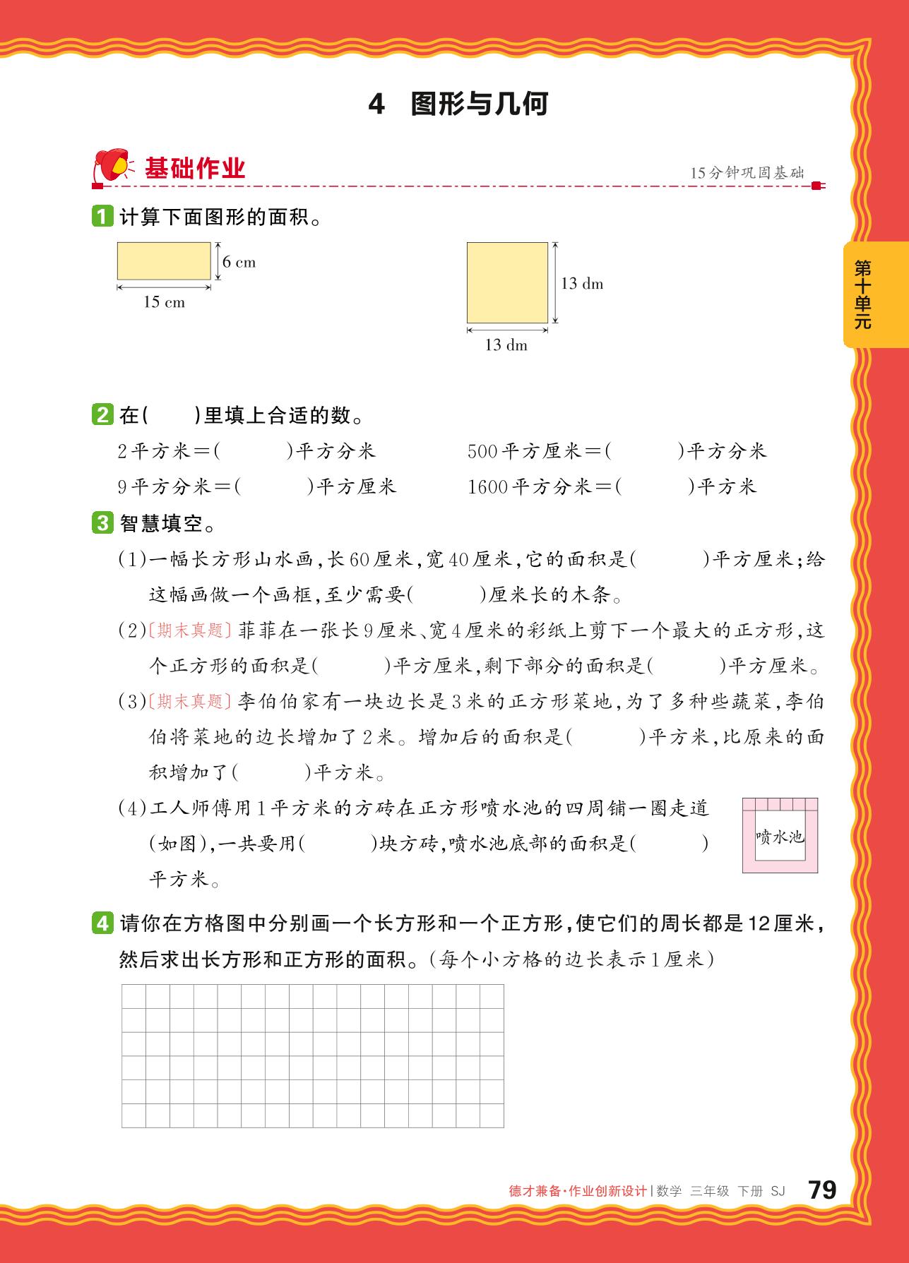 2024春下册三年级数学苏教版 第十单元 期末复习——4. 图形与几何