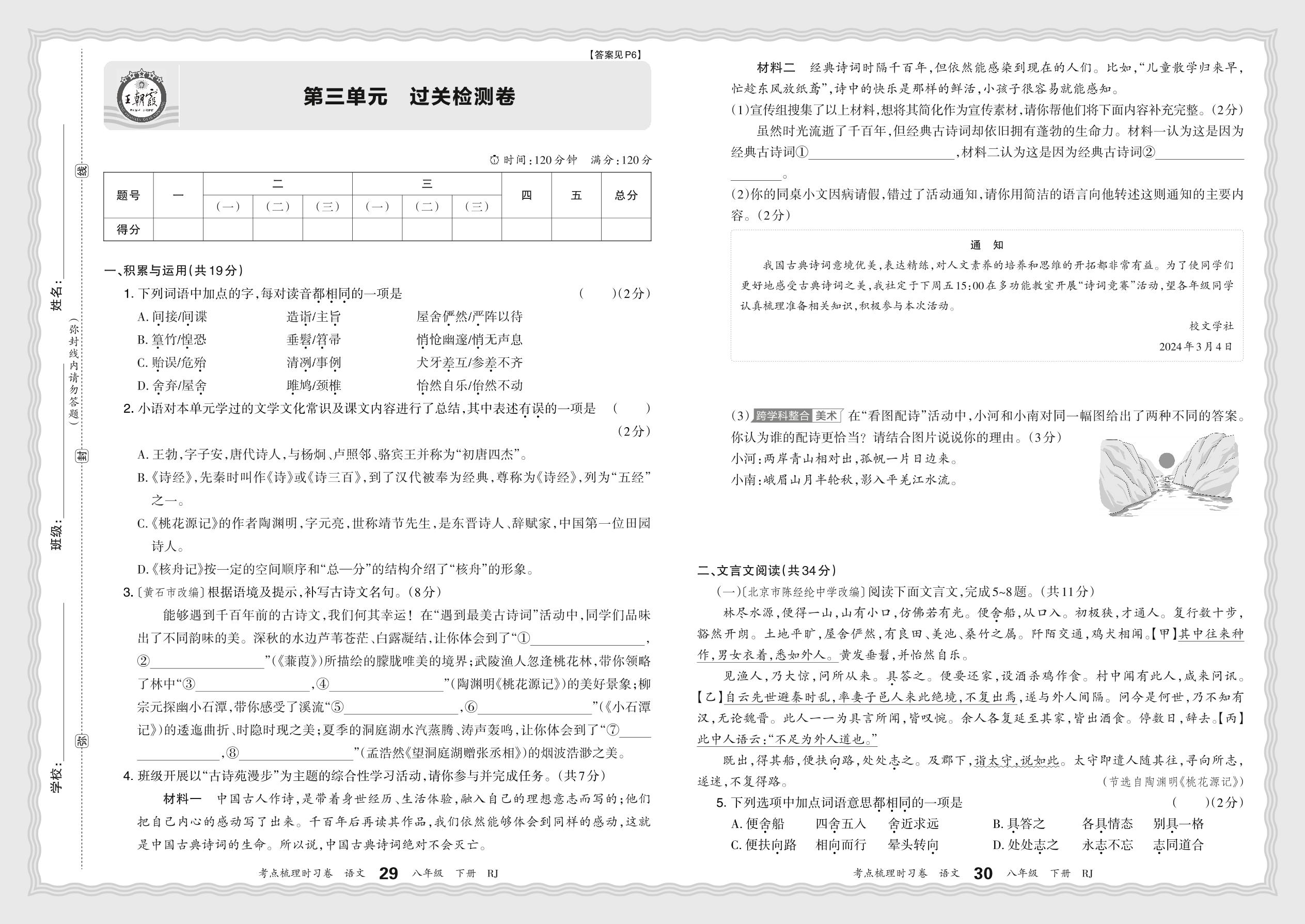 2024春下册八年级语文人教版 第三单元 过关检测卷
