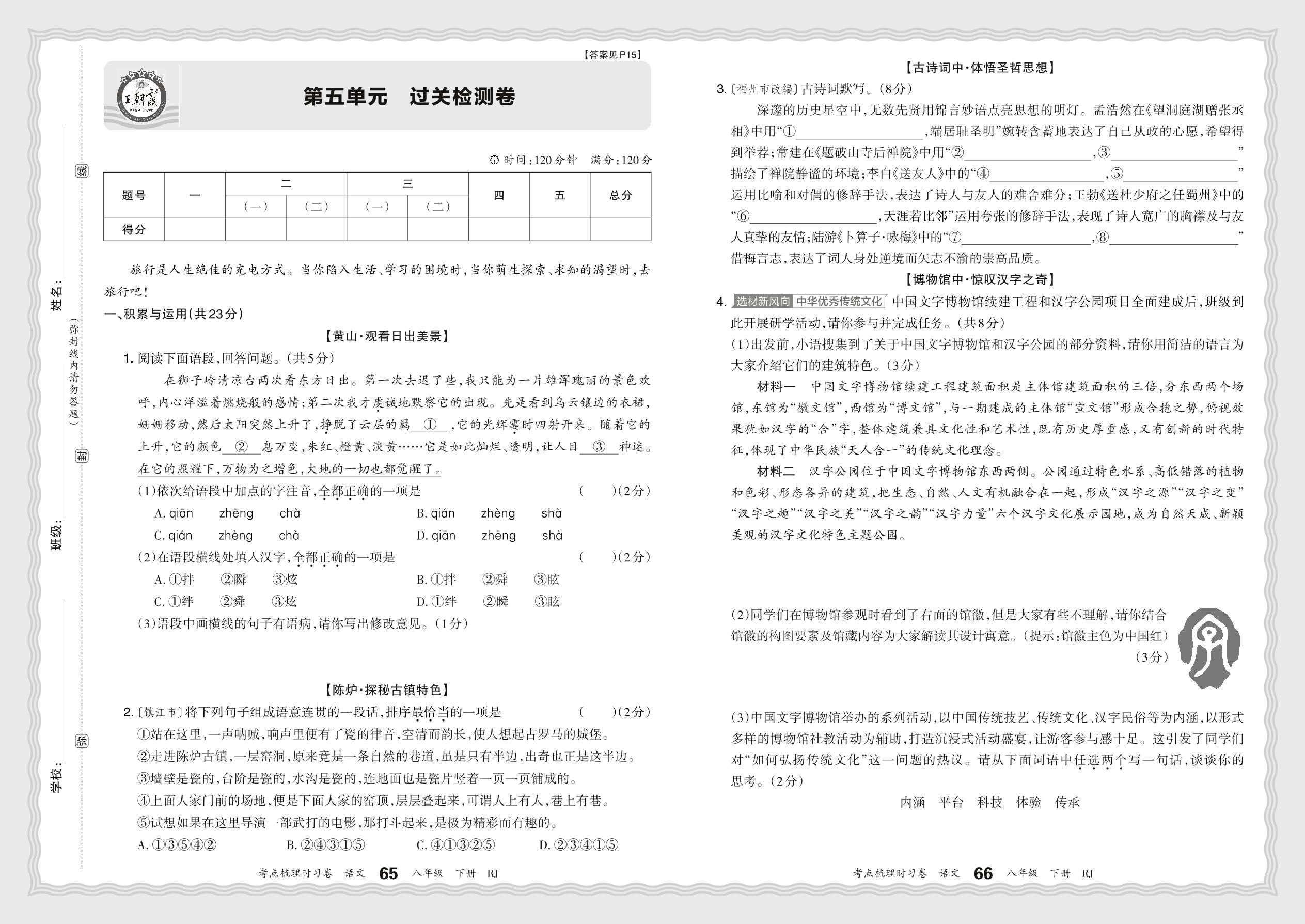 2024春下册八年级语文人教版 第五单元 过关检测卷