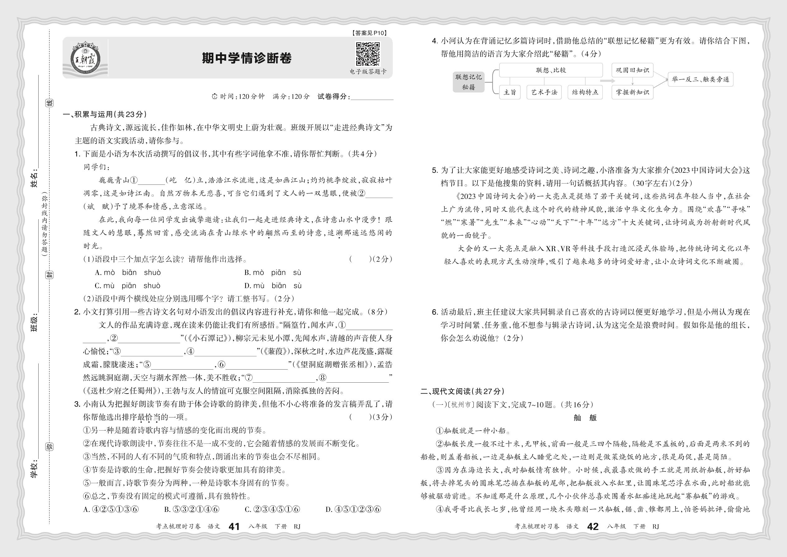 八年级语文人教版下册期中卷