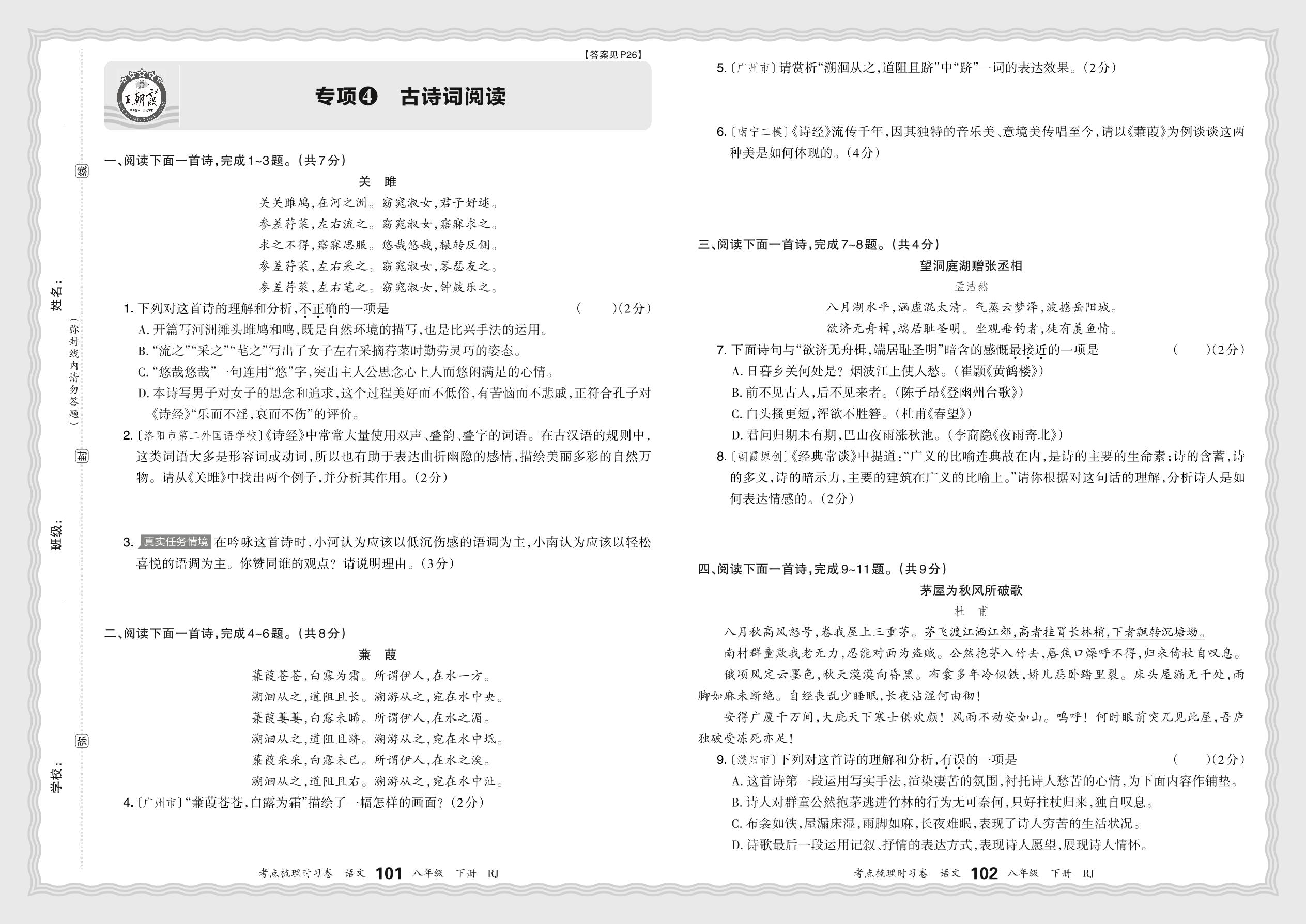 2024春下册八年级语文人教版 期末专项卷KD版·古诗词阅读【4】
