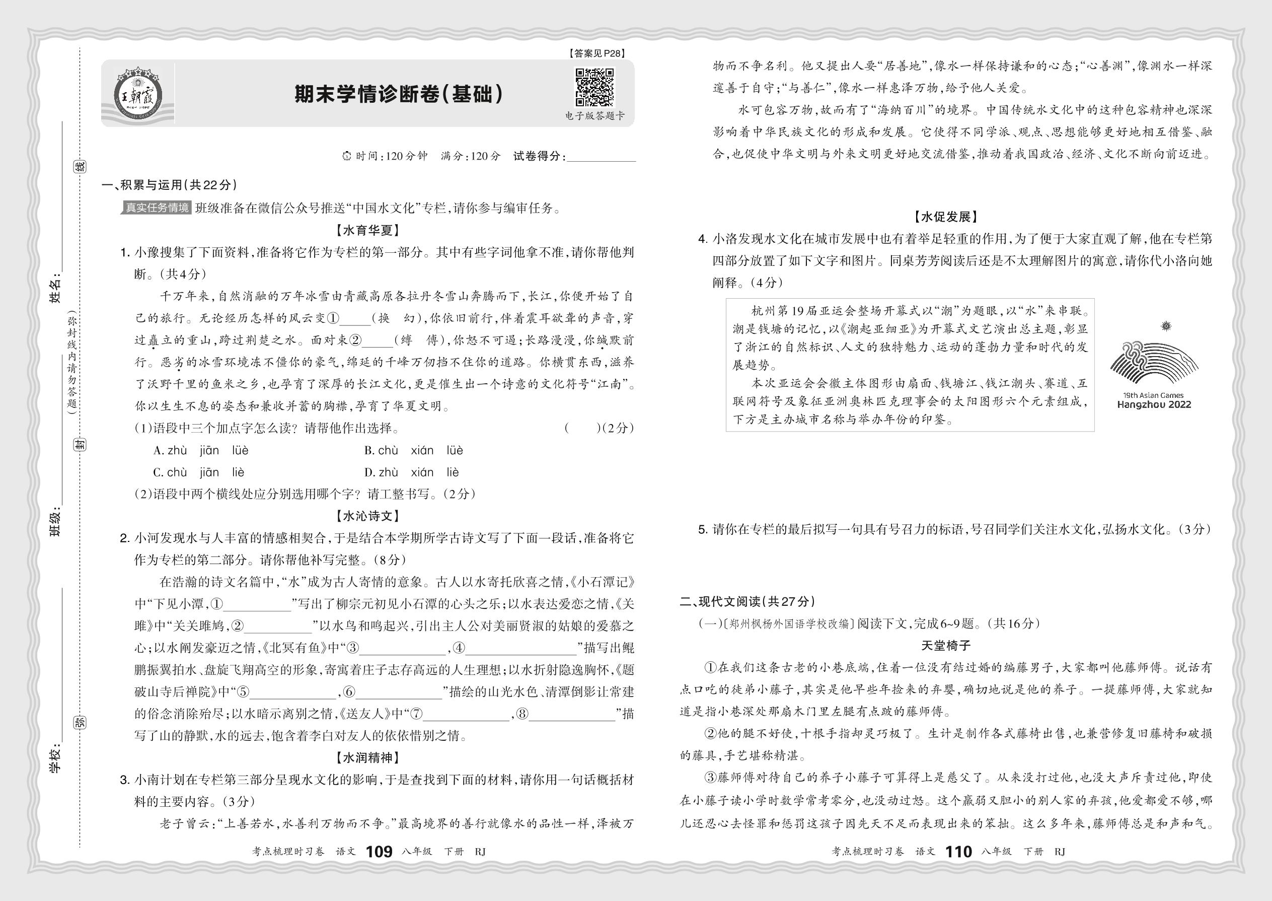 2024春下册八年级语文人教版 期末学情诊断卷(基础)