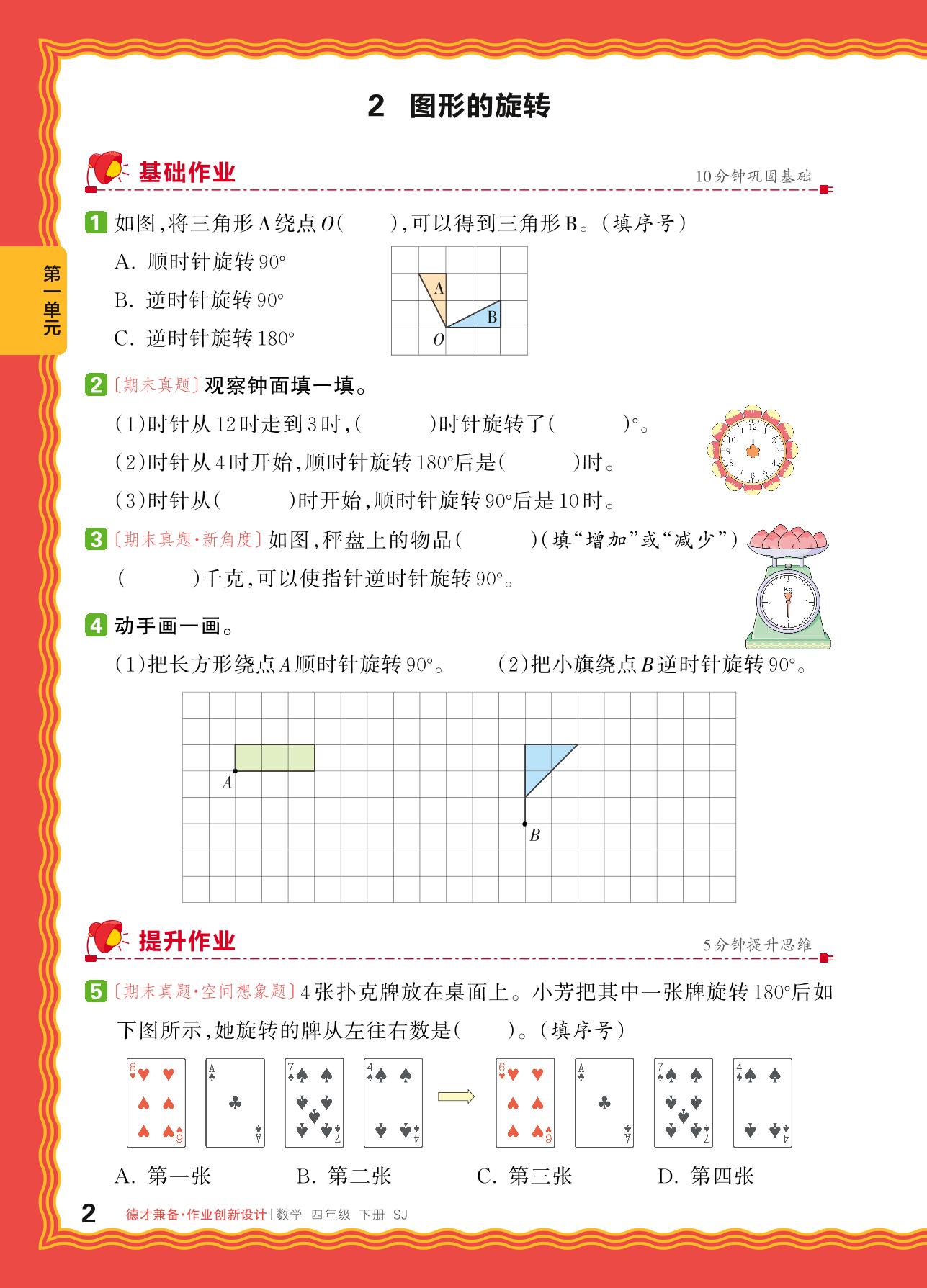 2024春下册四年级数学苏教版 第一单元 平移、旋转和轴对称——2. 图形的旋转
