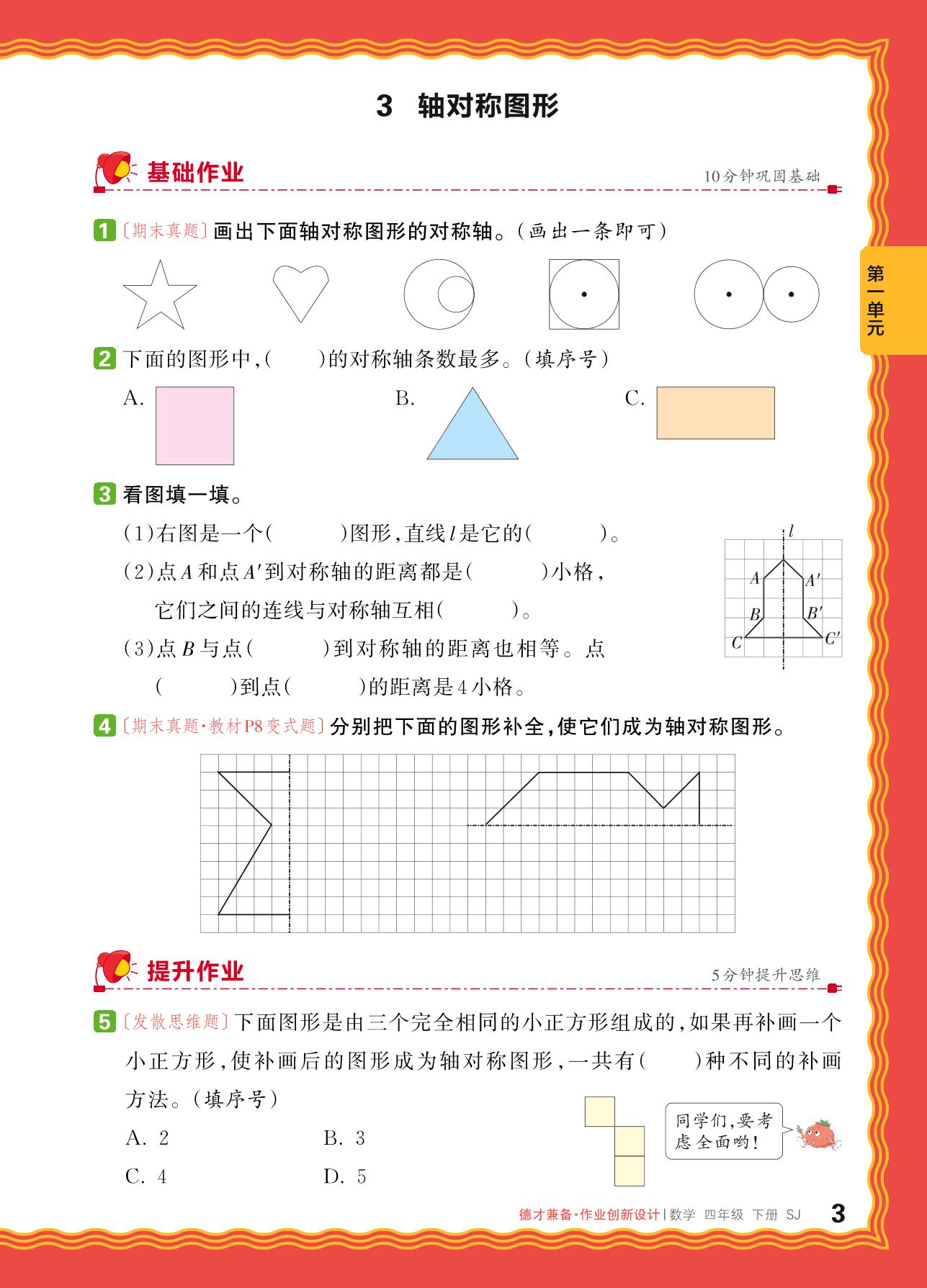2024春下册四年级数学苏教版 第一单元 平移、旋转和轴对称——3. 轴对称图形