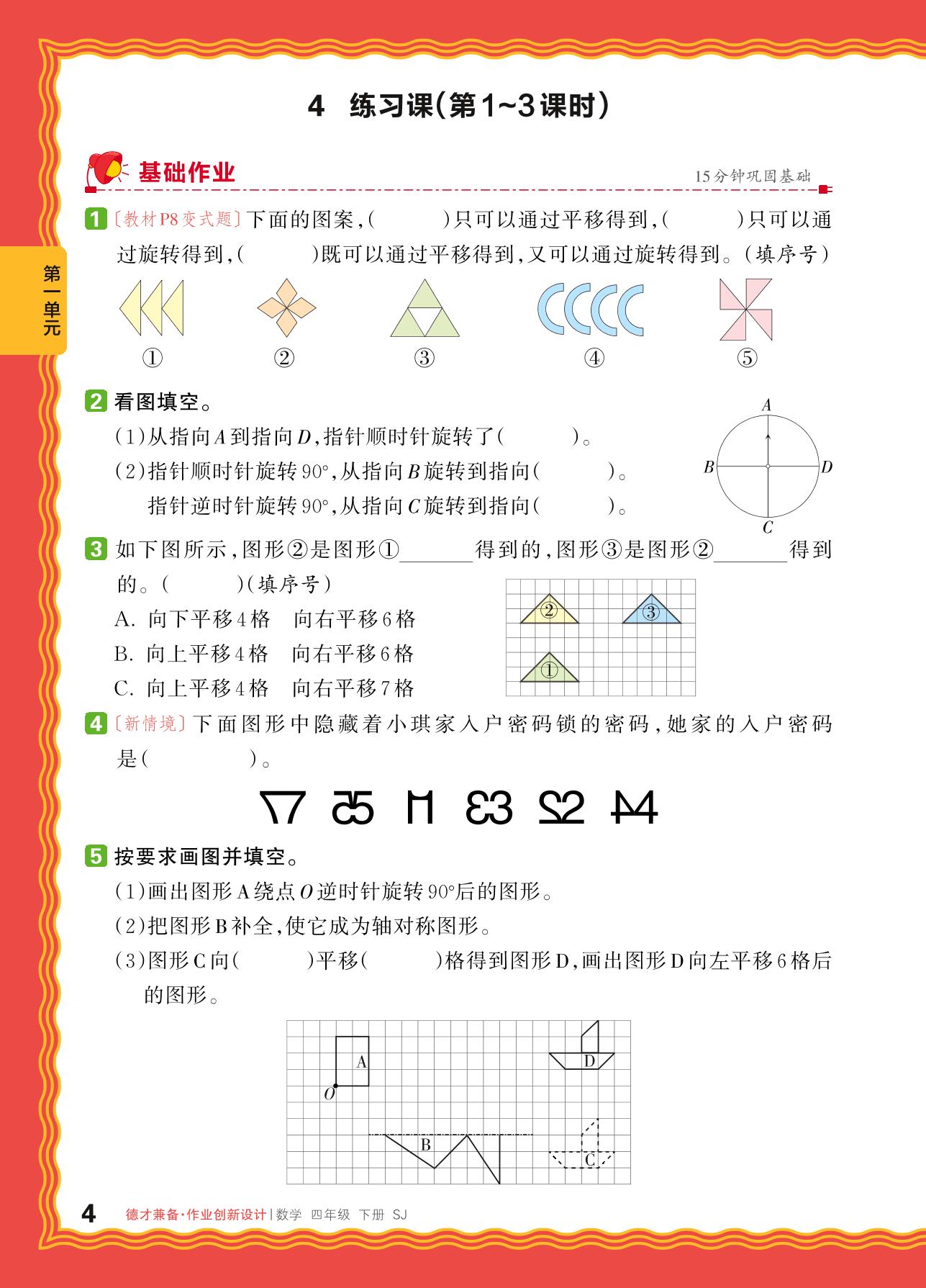 2024春下册四年级数学苏教版 第一单元平移、旋转和轴对称练习课