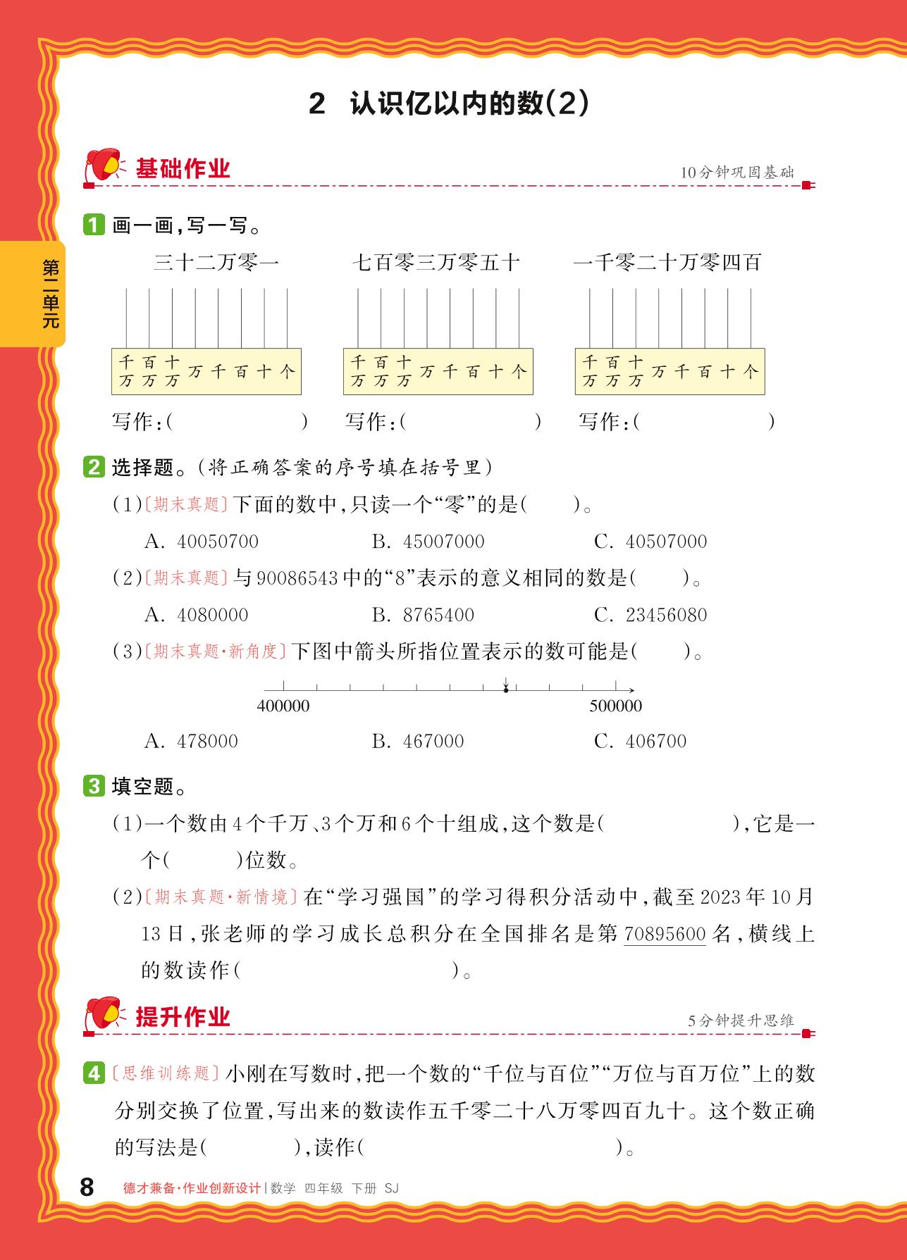 2024春下册四年级数学苏教版 第二单元 认识多位数——2. 认识亿以内的数(2)