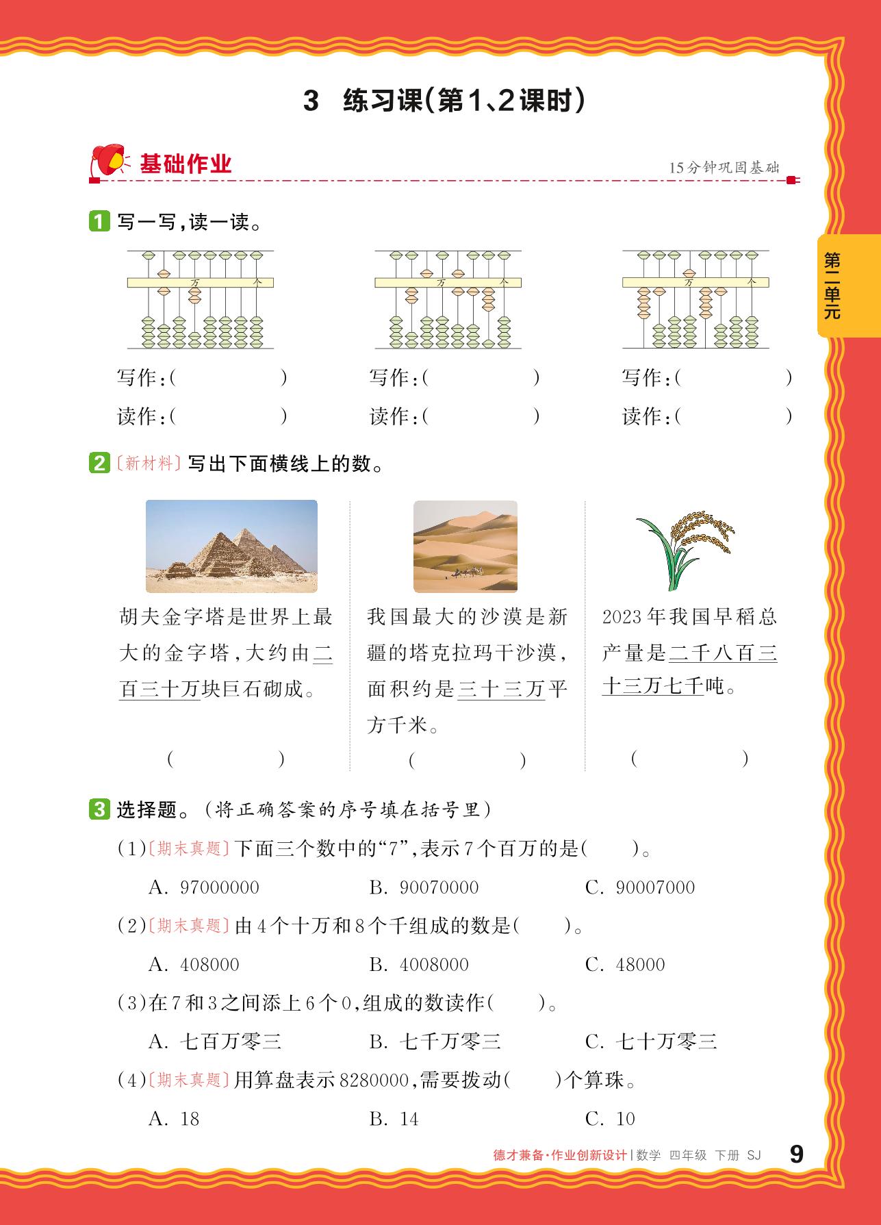 2024春下册四年级数学苏教版 第二单元 认识多位数——认识亿以内的数练习课