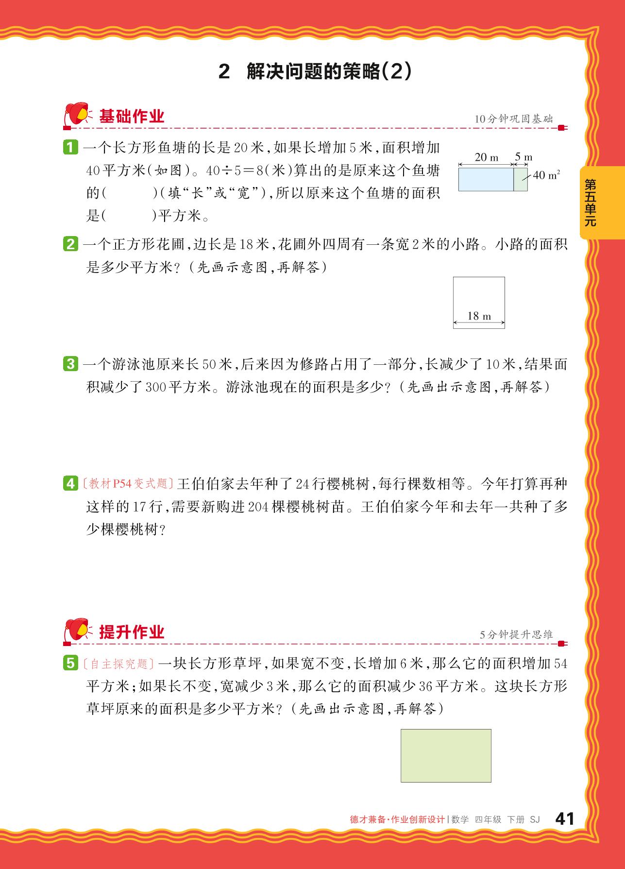 2024春下册四年级数学苏教版 第五单元 解决问题的策略——2. 解决问题的策略(2)