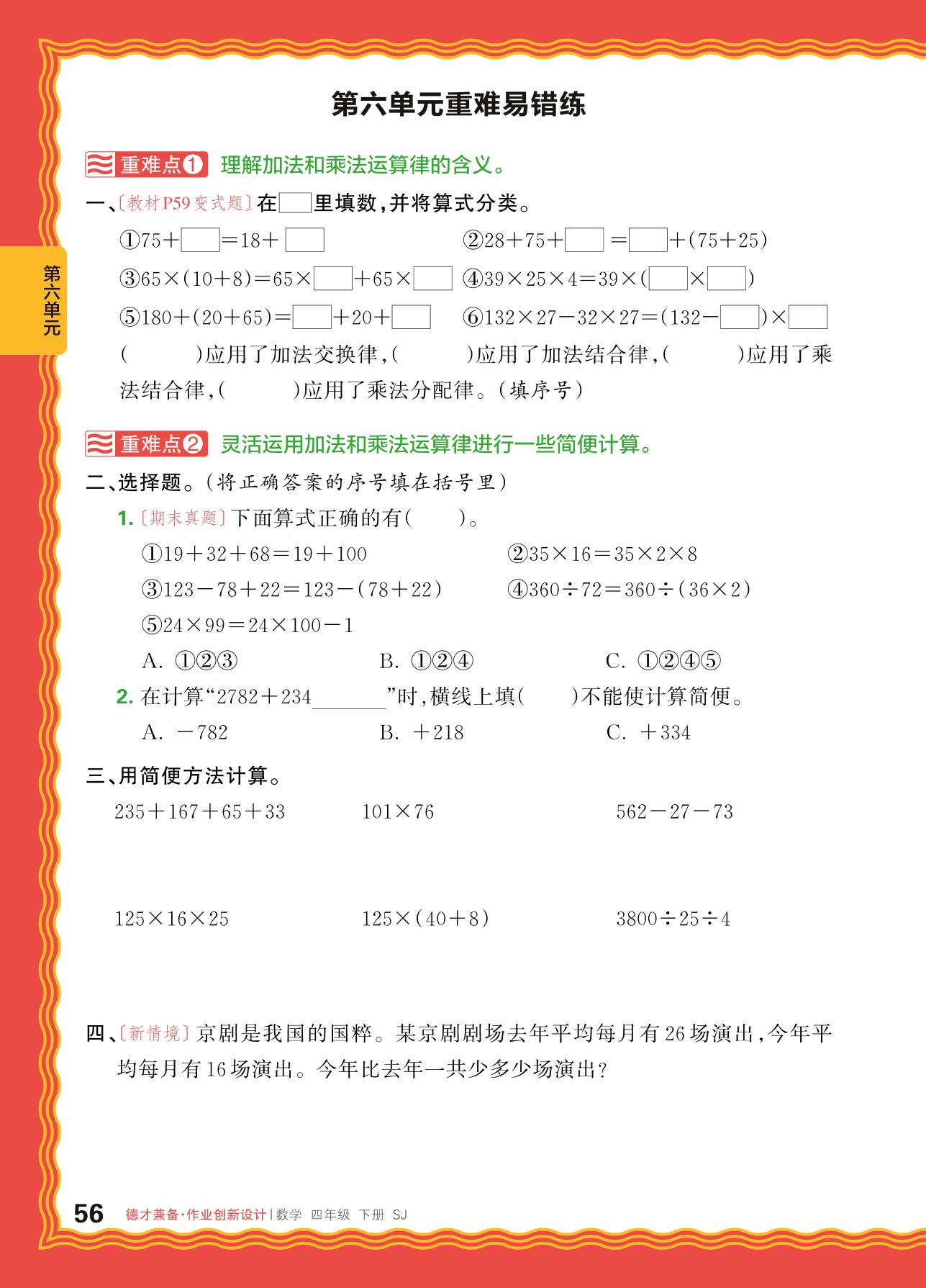 2024春下册四年级数学苏教版 第六单元重难易错练