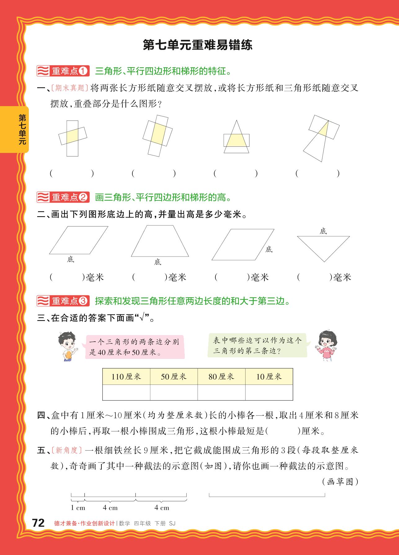 2024春下册四年级数学苏教版 第七单元重难易错练