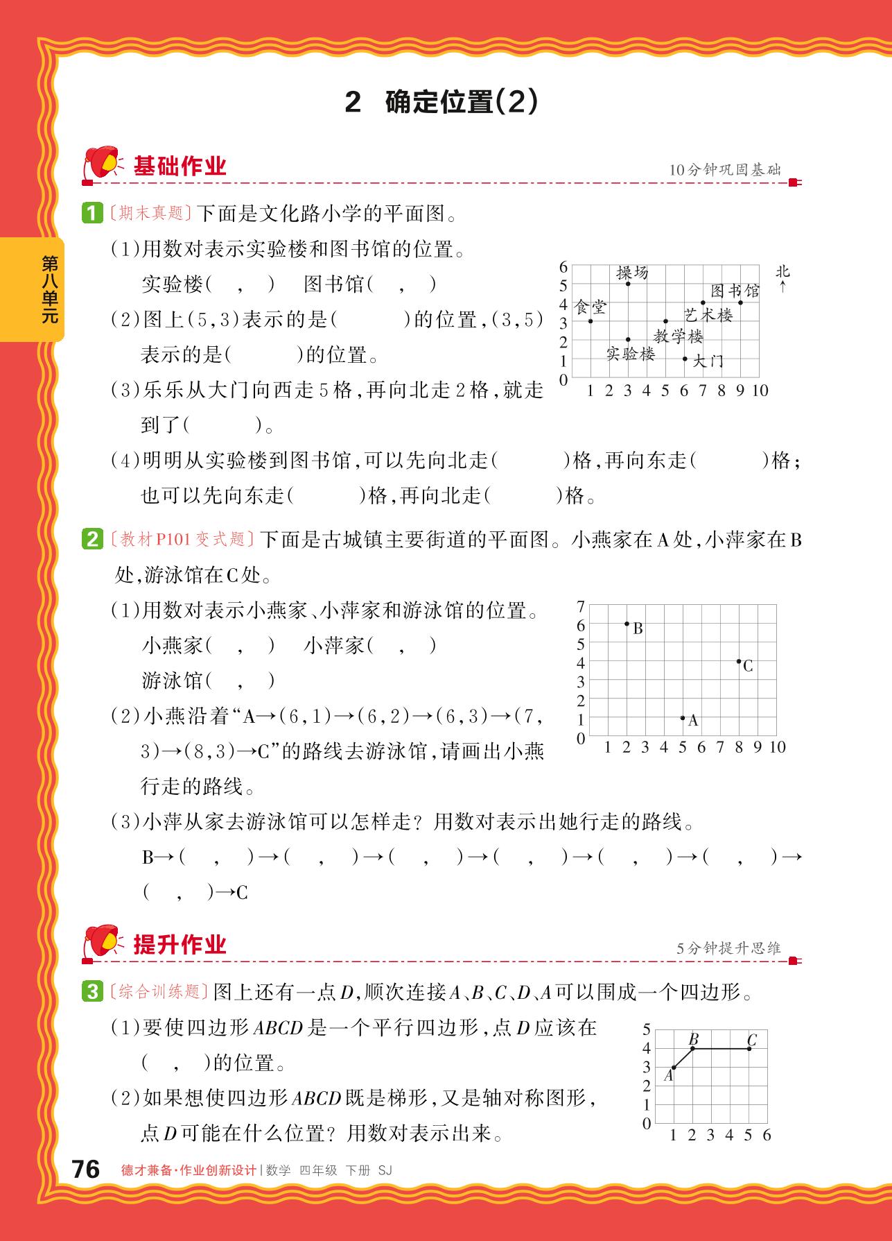 2024春下册四年级数学苏教版 第八单元 确定位置——2. 确定位置(2)