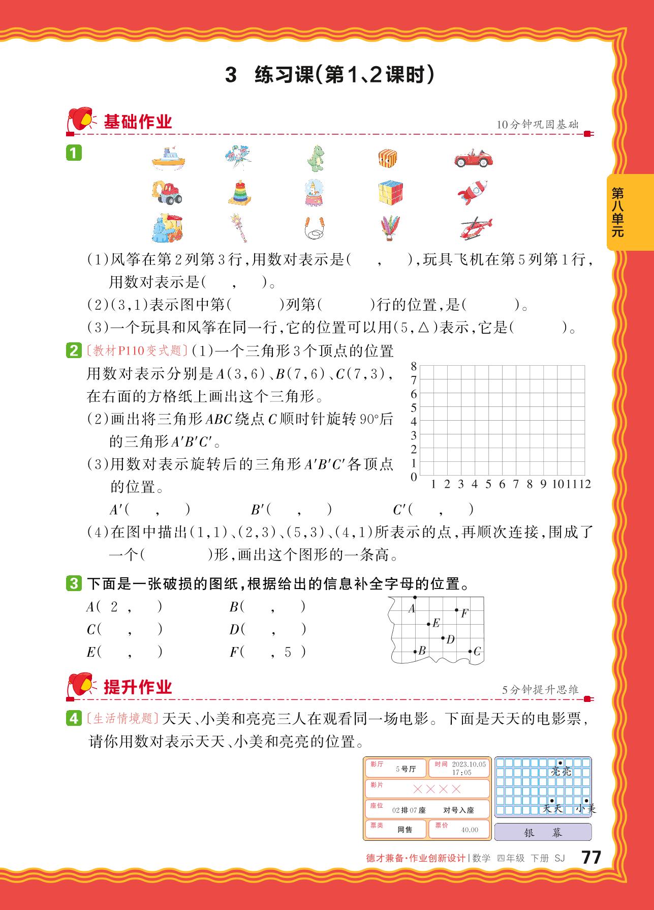 2024春下册四年级数学苏教版 第八单元确定位置练习课