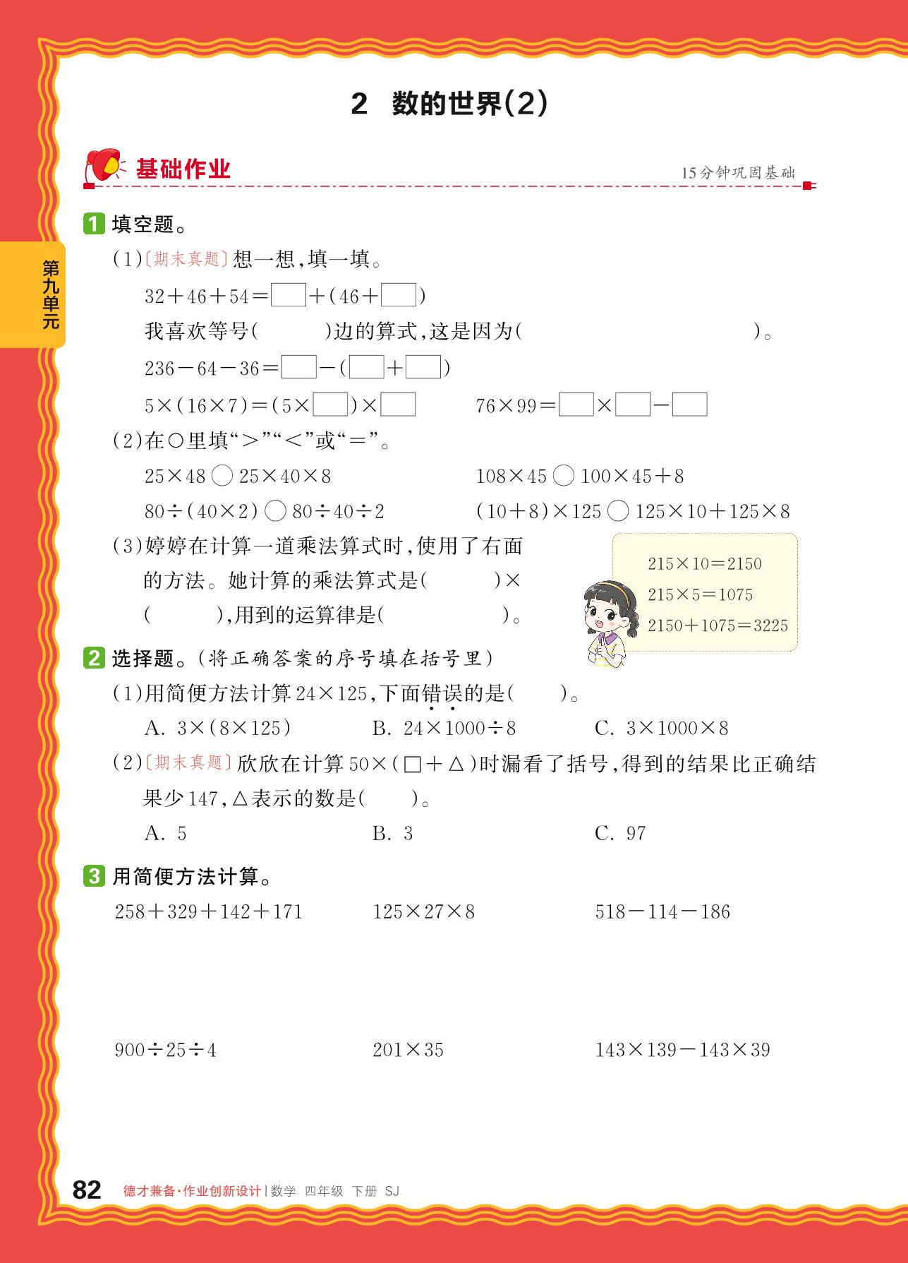 2024春下册四年级数学苏教版 第九单元 整理与复习——2. 数的世界(2)