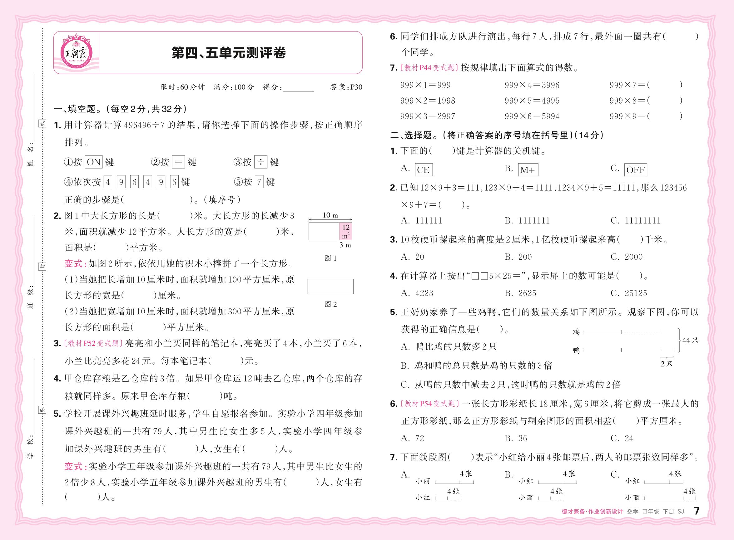 2024春下册四年级数学苏教版 第四、五单元测评卷