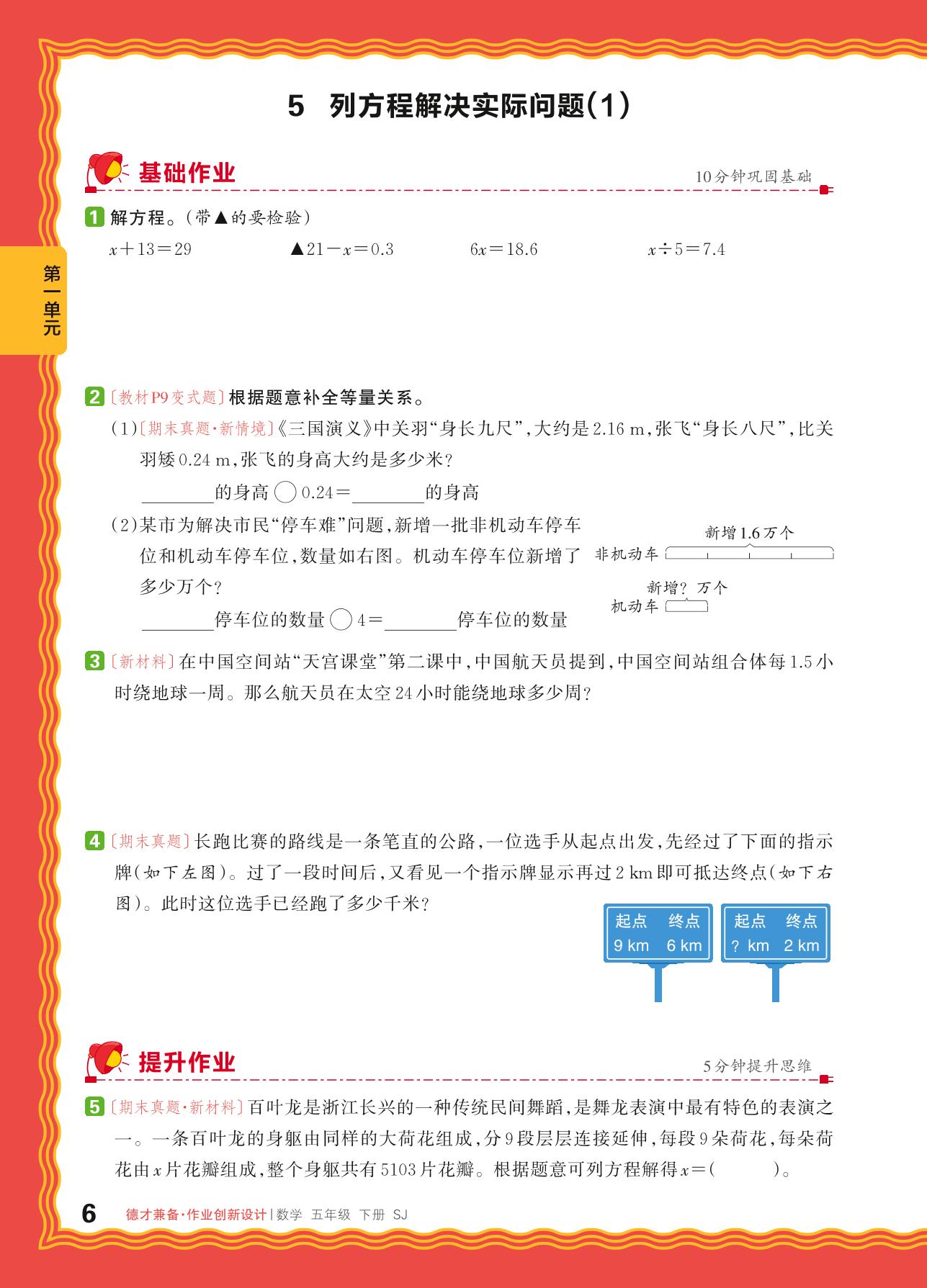 2024春下册五年级数学苏教版 第一单元 简易方程——5. 列方程解决实际问题(1)