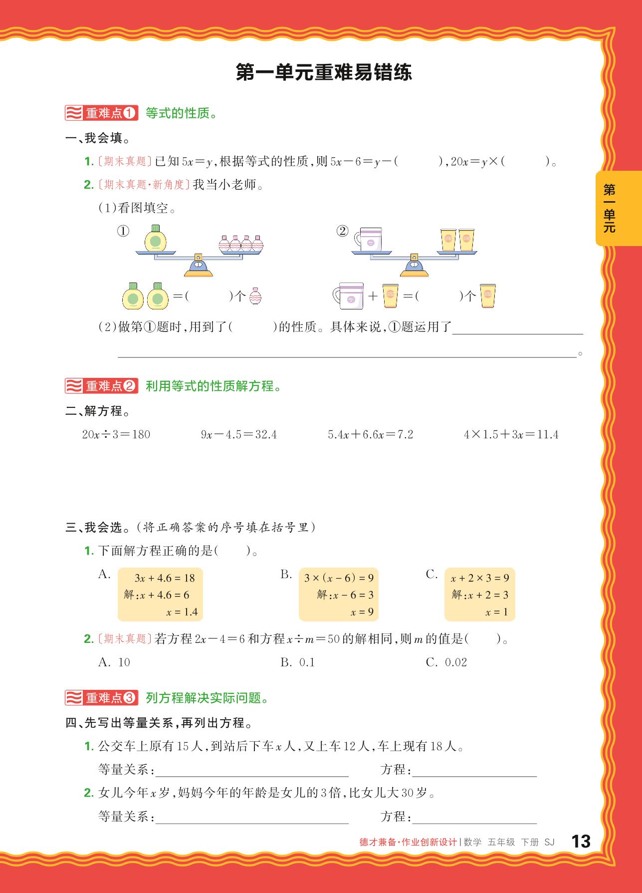2024春下册五年级数学苏教版 第一单元重难易错练