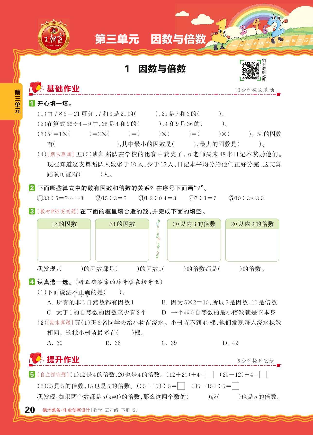 2024春下册五年级数学苏教版 第三单元 因数与倍数——1. 因数与倍数