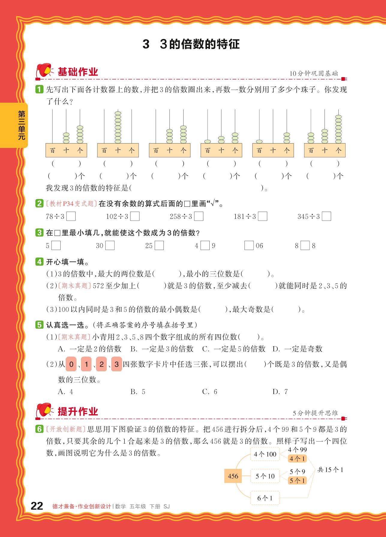 2024春下册五年级数学苏教版 第三单元 因数与倍数——3. 3的倍数的特征