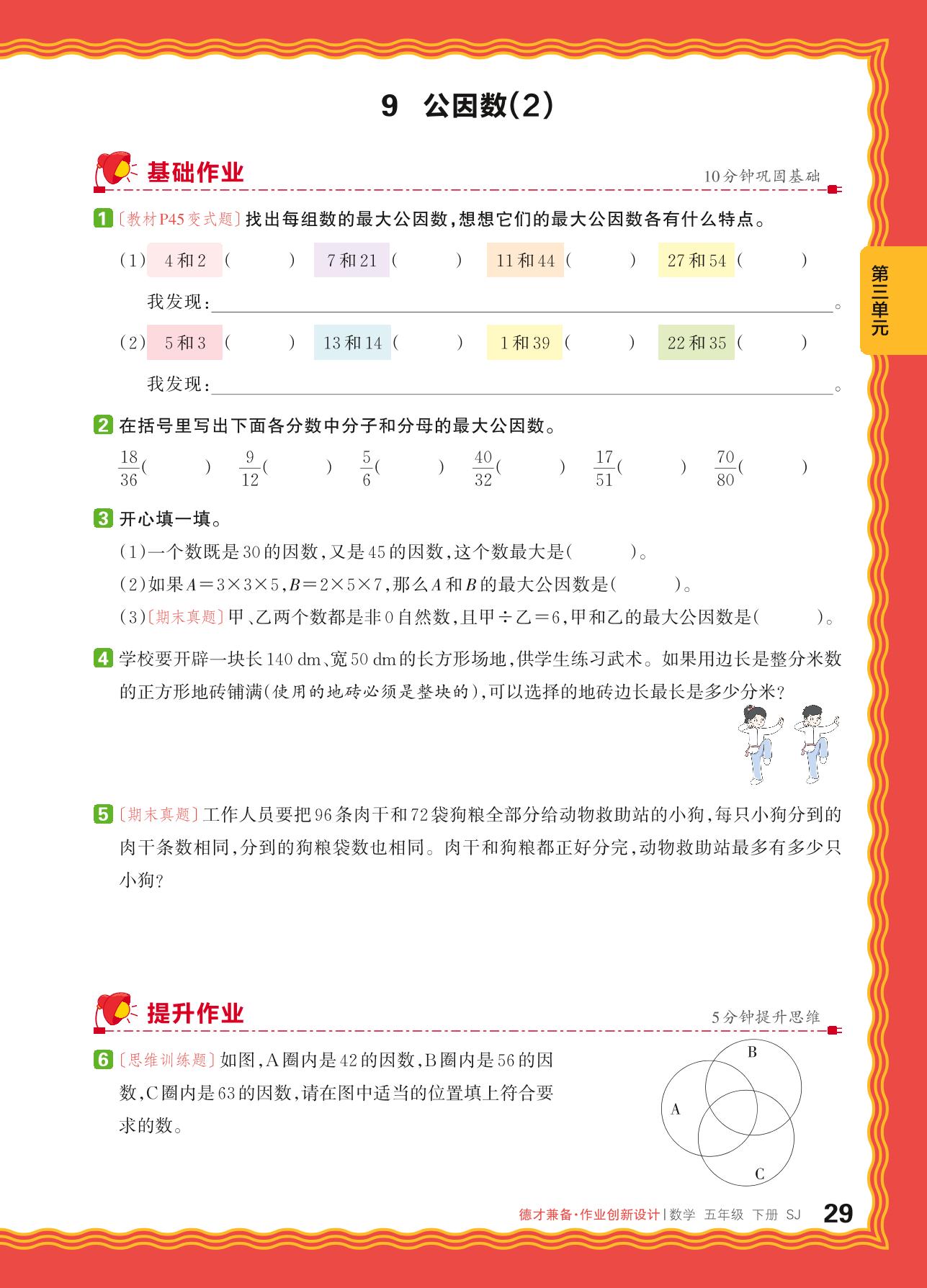 2024春下册五年级数学苏教版 第三单元 因数与倍数——9. 公因数(2)