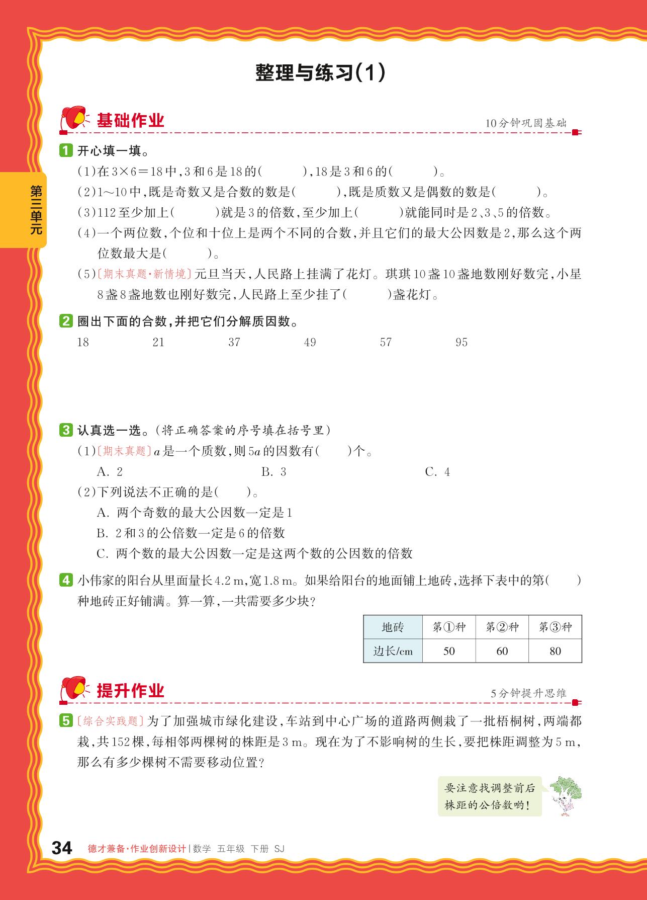 2024春下册五年级数学苏教版 第三单元 因数与倍数——整理与练习(1)