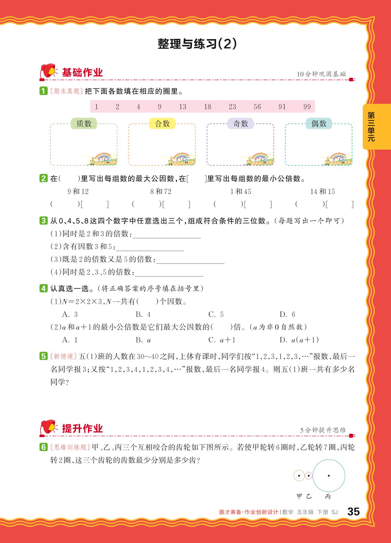 2024春下册五年级数学苏教版 第三单元 因数与倍数——整理与练习(2)