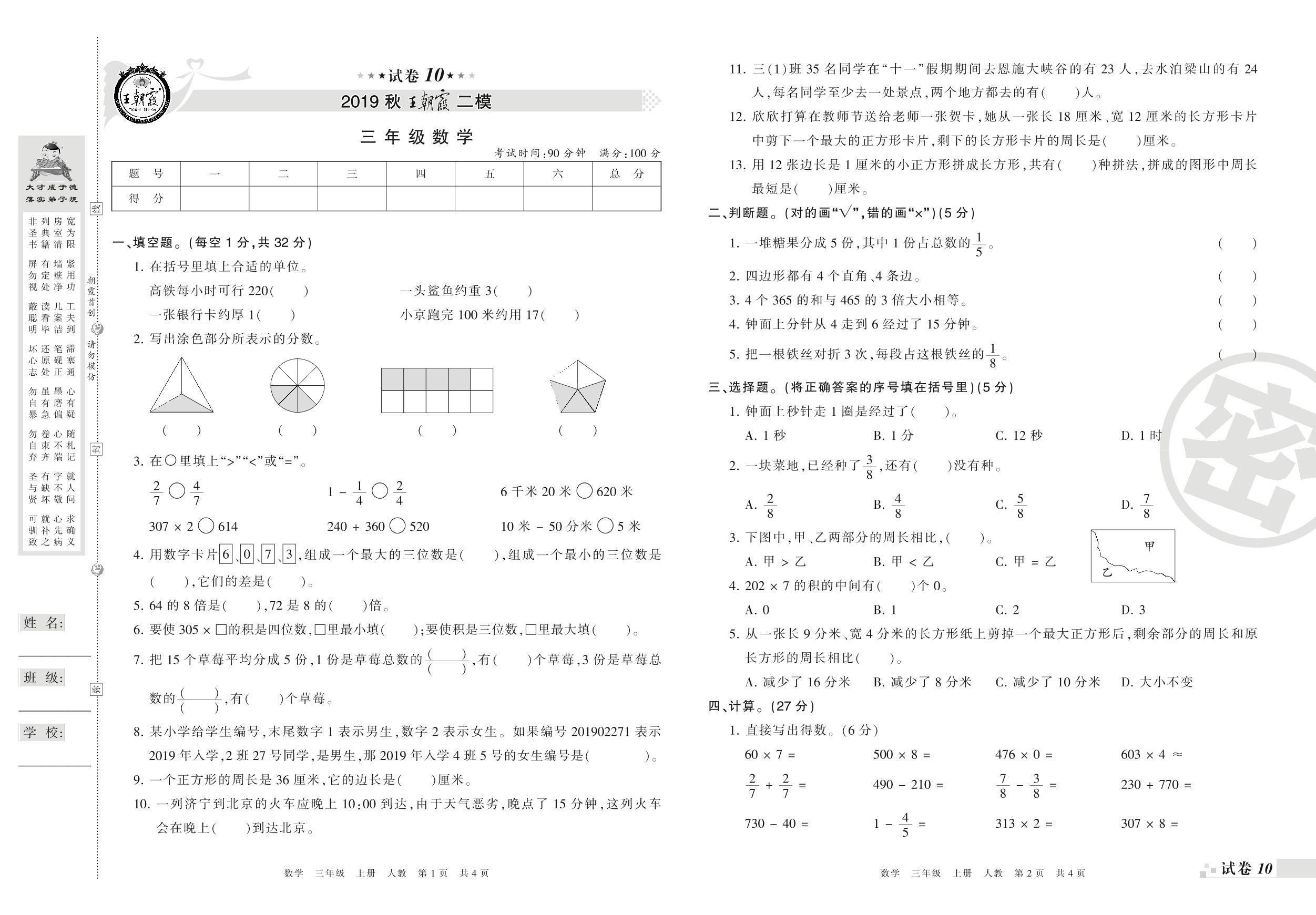 王朝霞期末模拟卷三年级上册数学(人教版)_R210804100439【10】