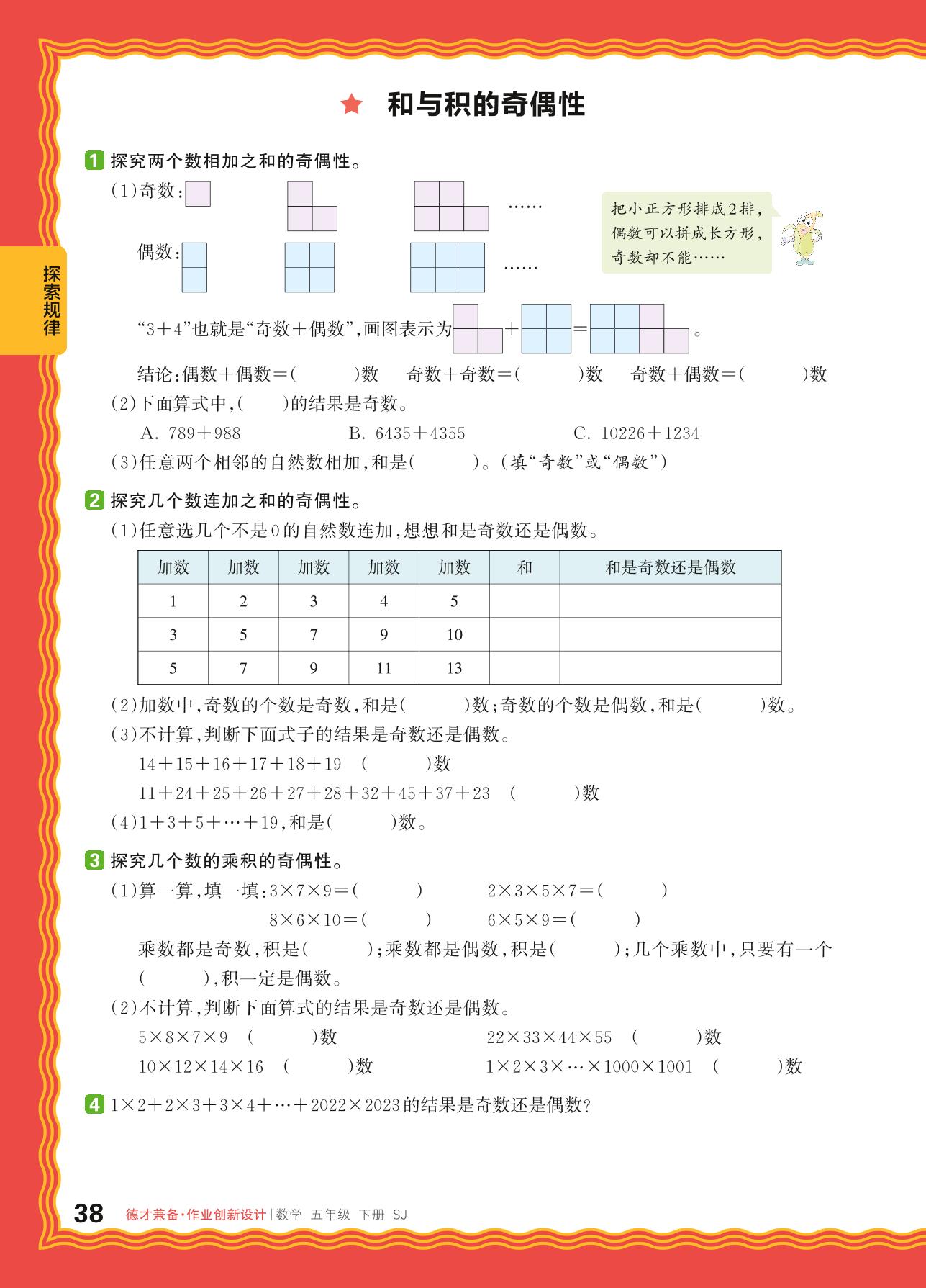 2024春下册五年级数学苏教版 探索规律——和与积的奇偶性