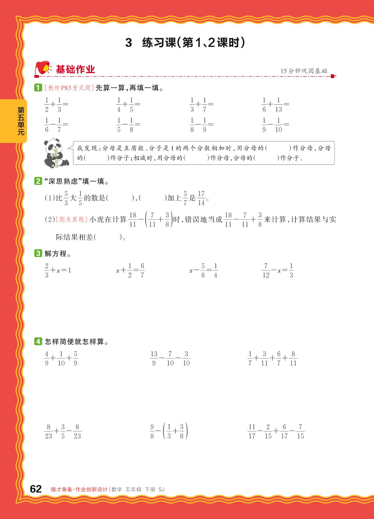 2024春下册五年级数学苏教版 第五单元分数加法和减法练习课