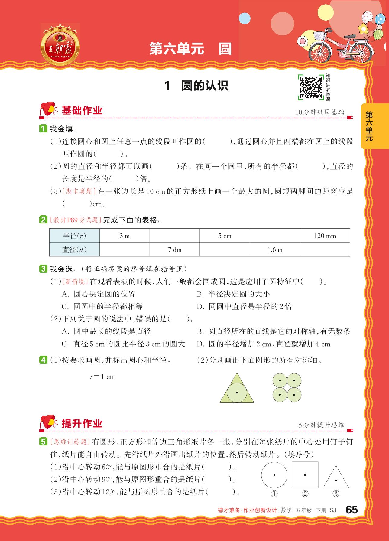 2024春下册五年级数学苏教版 第六单元 圆——1. 圆的认识
