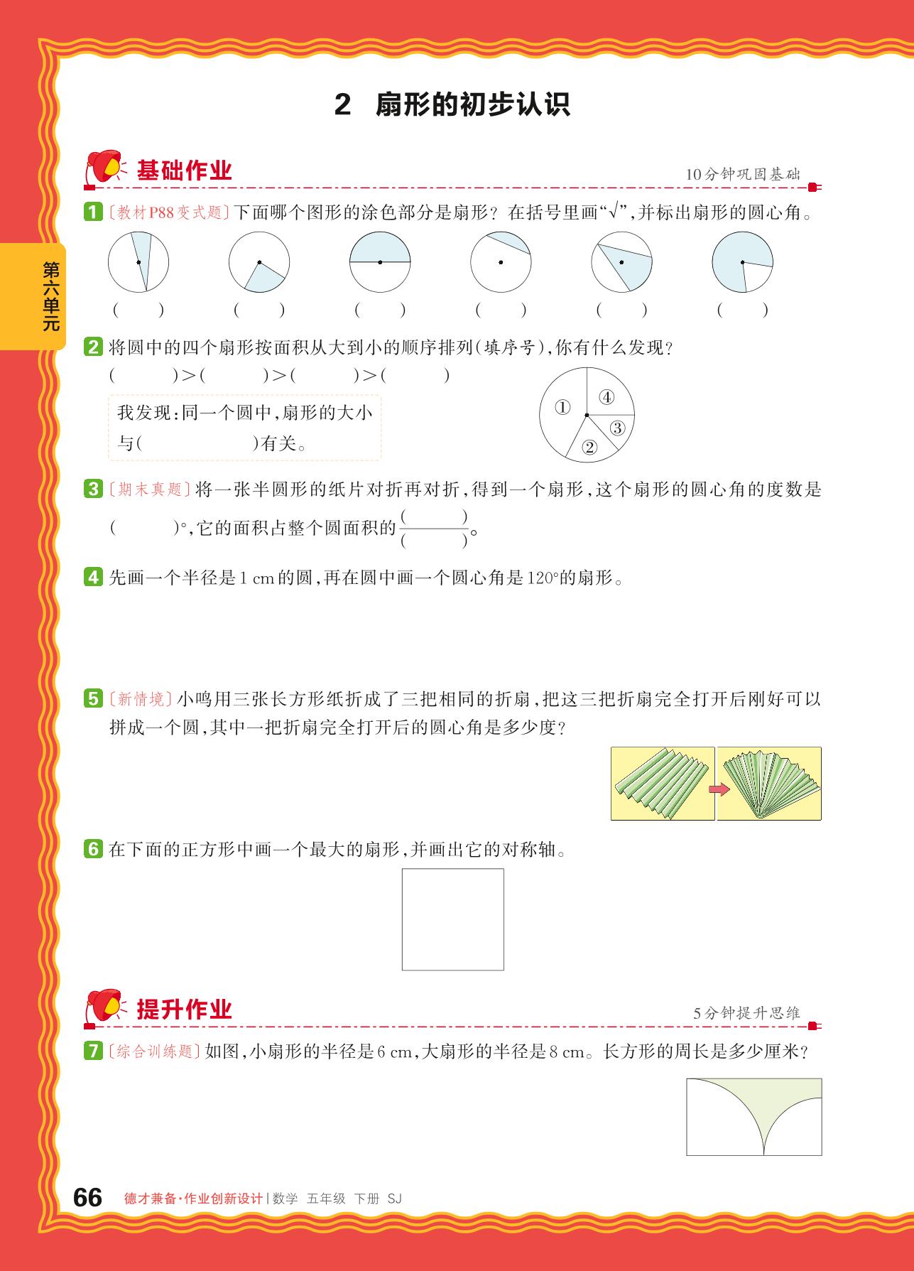 2024春下册五年级数学苏教版 第六单元 圆——2. 扇形的初步认识