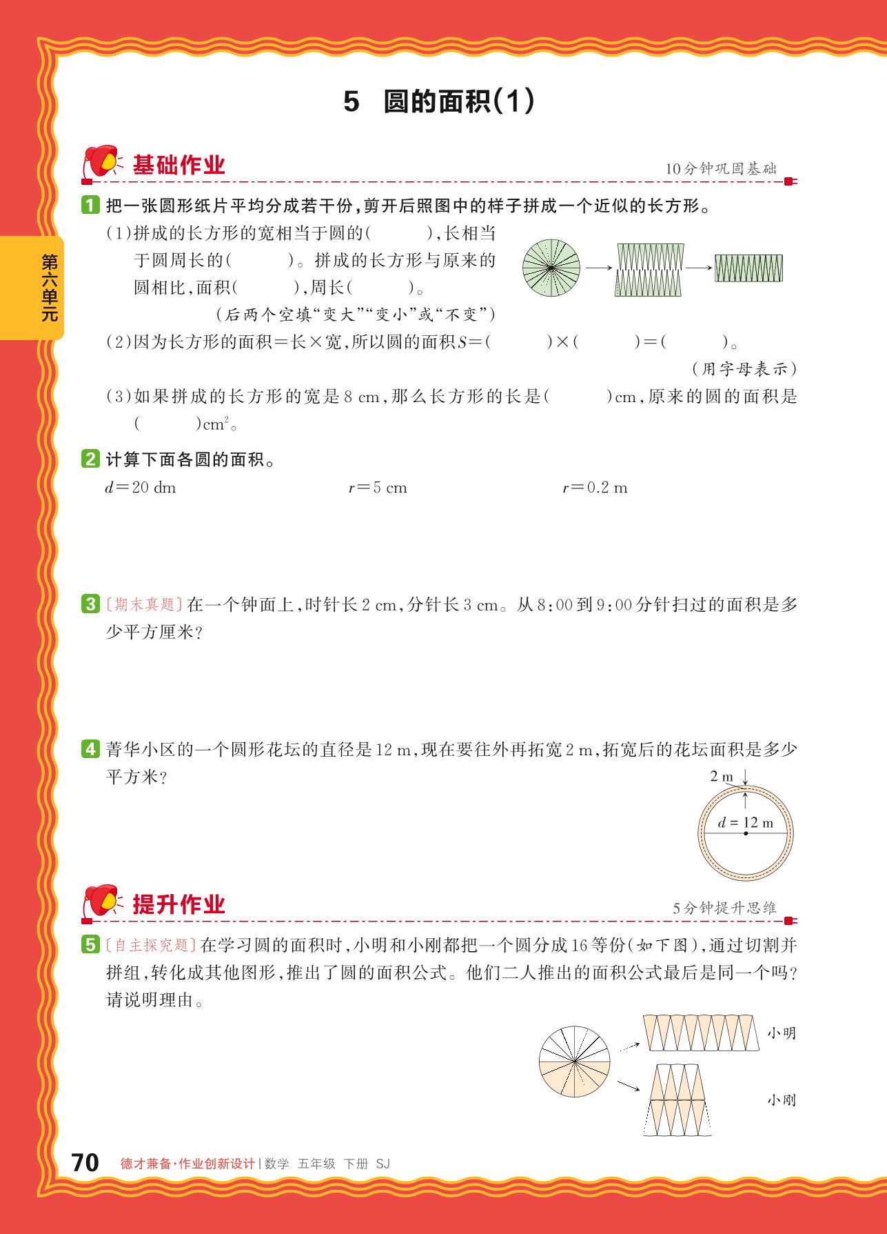 2024春下册五年级数学苏教版 第六单元 圆——5. 圆的面积(1)