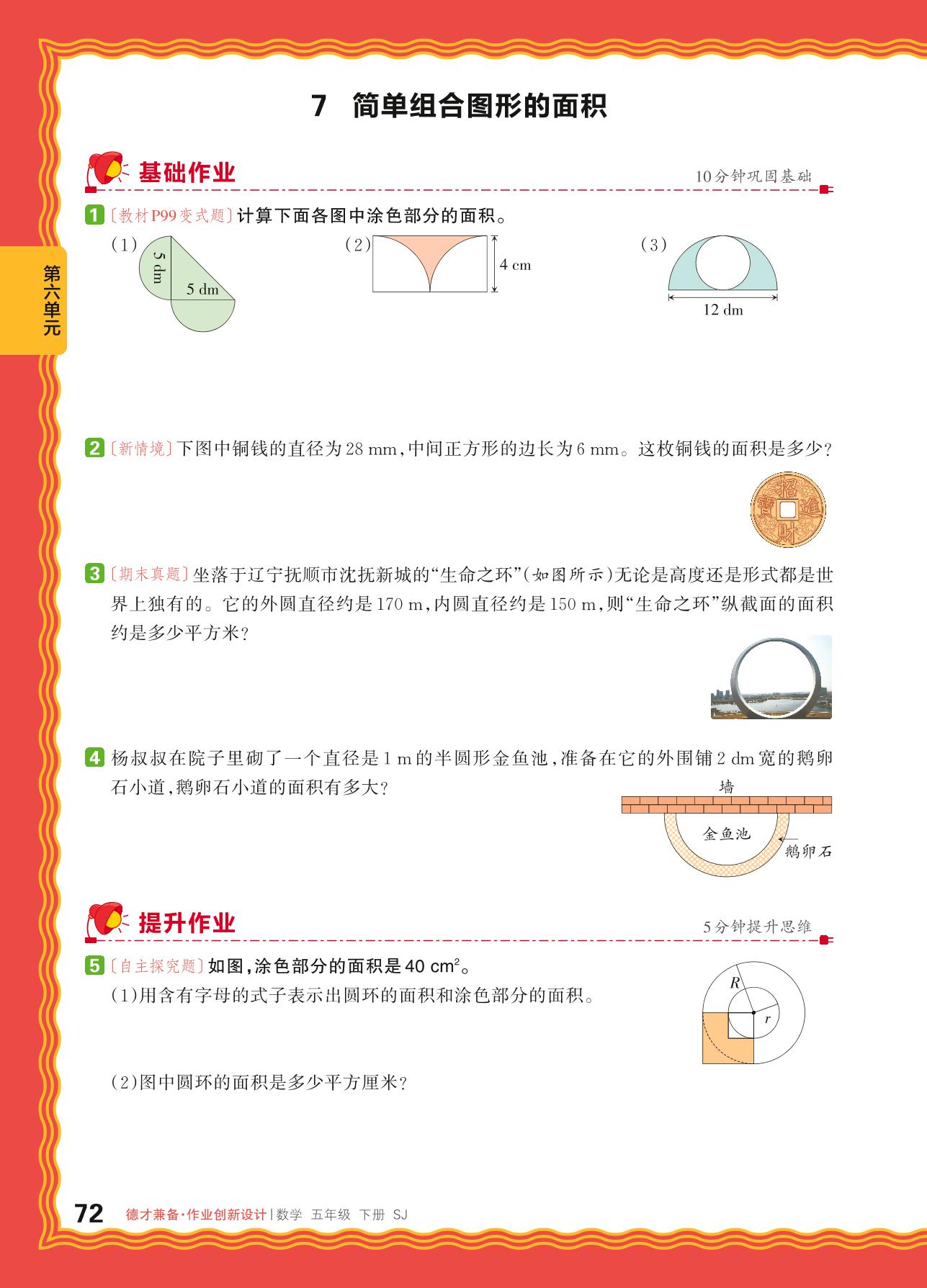 2024春下册五年级数学苏教版 第六单元 圆——7. 简单组合图形的面积