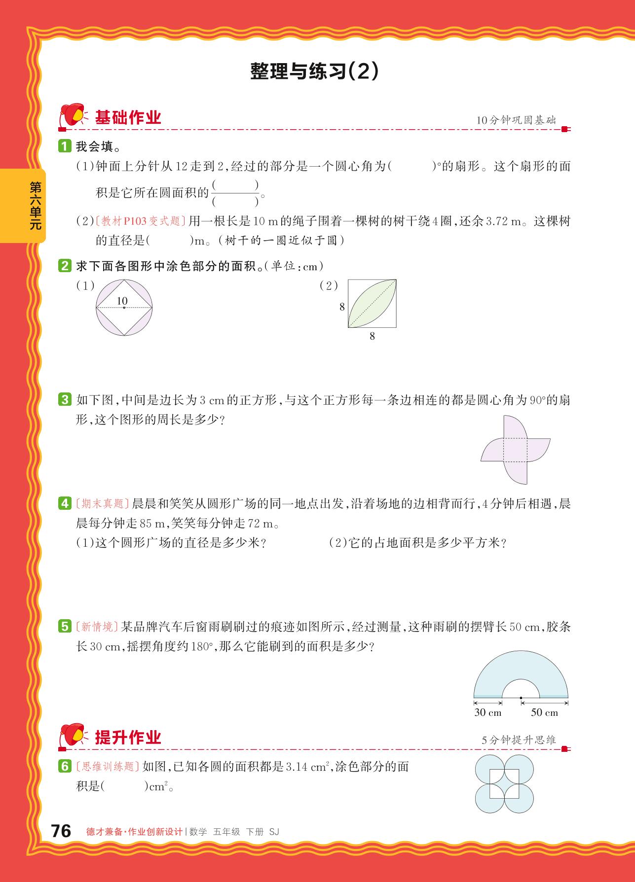 2024春下册五年级数学苏教版 第六单元 圆——整理与练习(2)