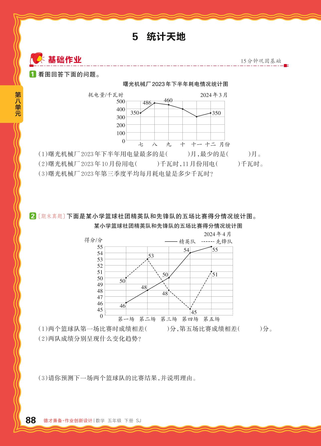 2024春下册五年级数学苏教版 第八单元 整理与复习——5. 统计天地