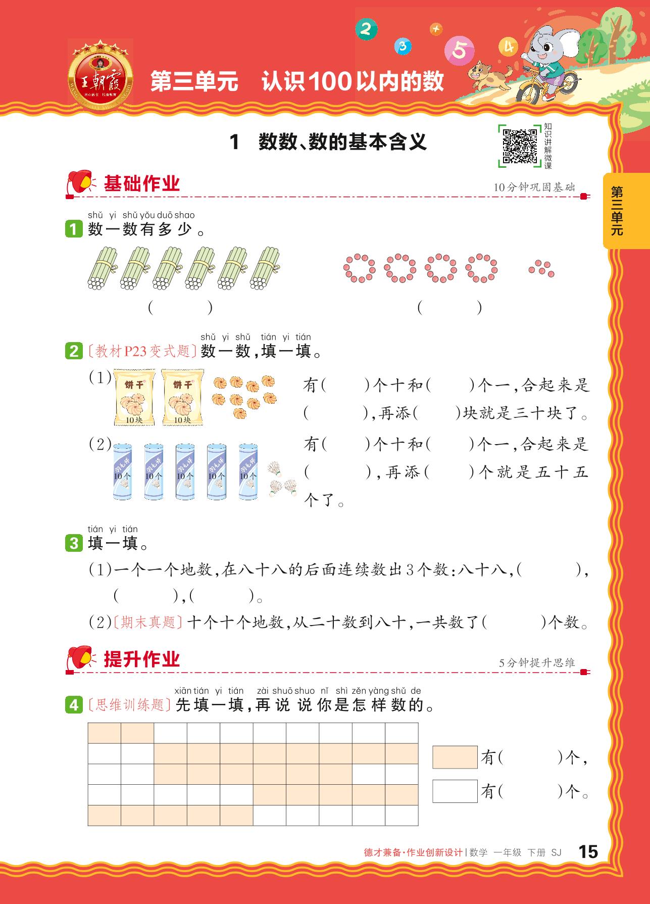 2024春下册一年级数学苏教版 第三单元 认识100以内的数——1. 数数、数的基本含义