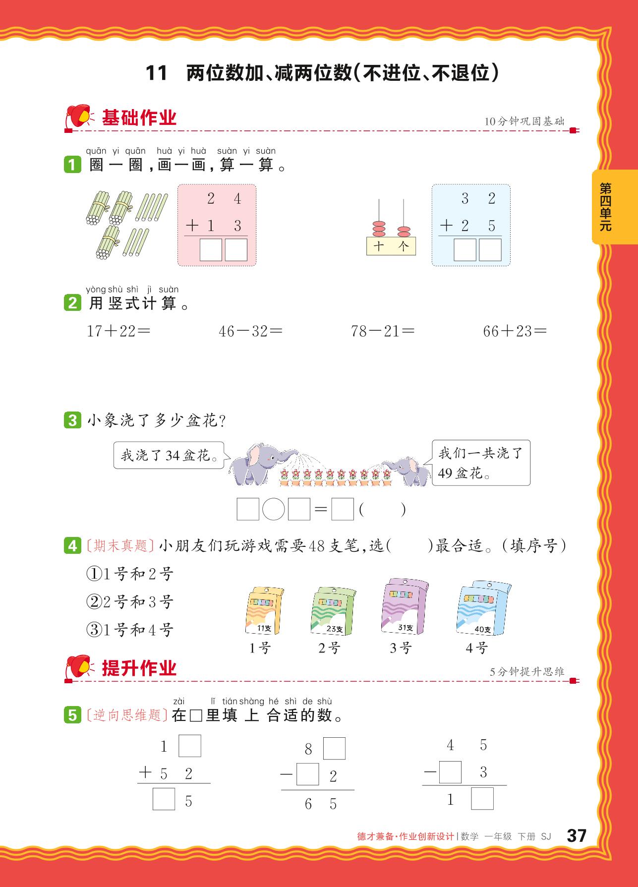2024春下册一年级数学苏教版 第四单元 100以内的加法和减法(一)——11. 两位数加、减两位数(不进位、不退位)