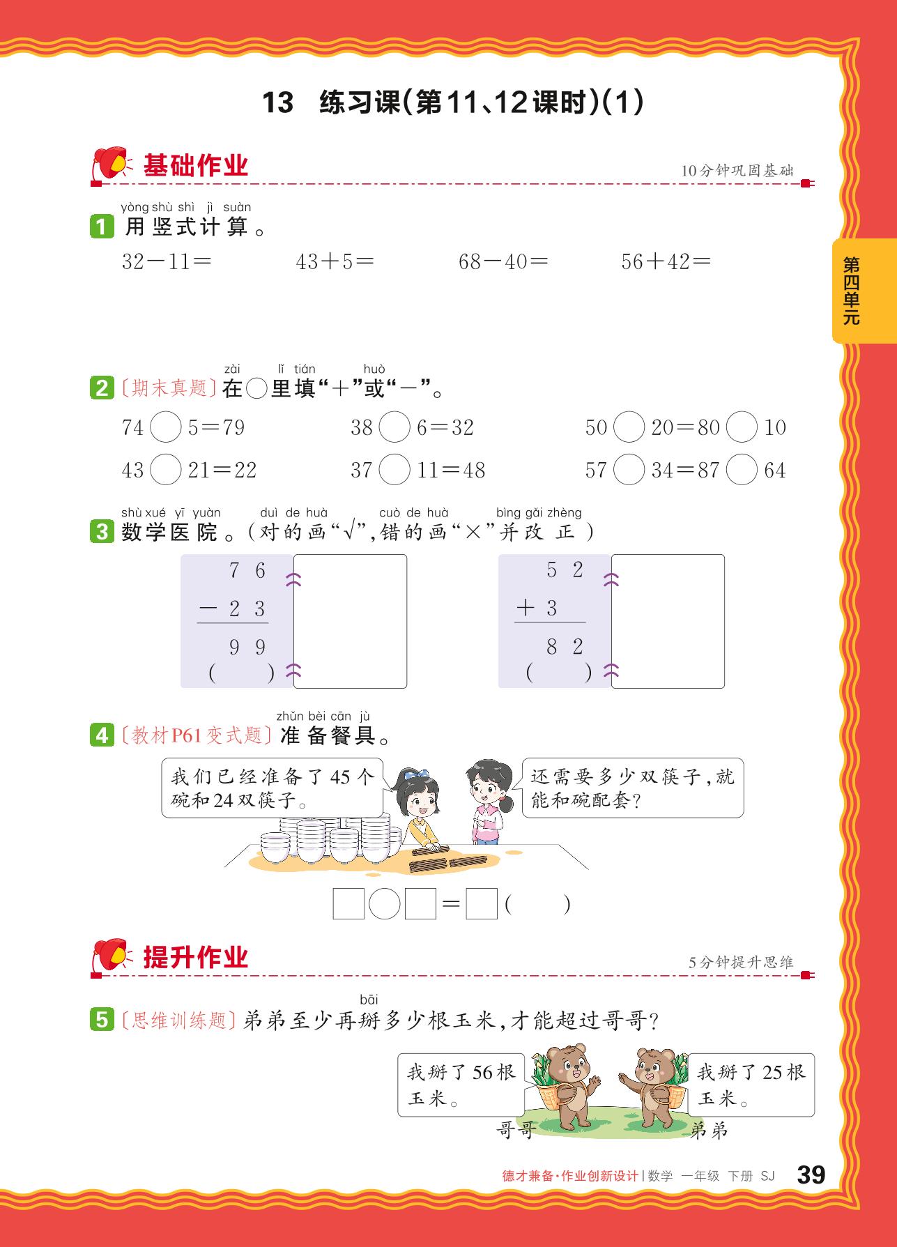 一年级数学苏教版下册课时作业