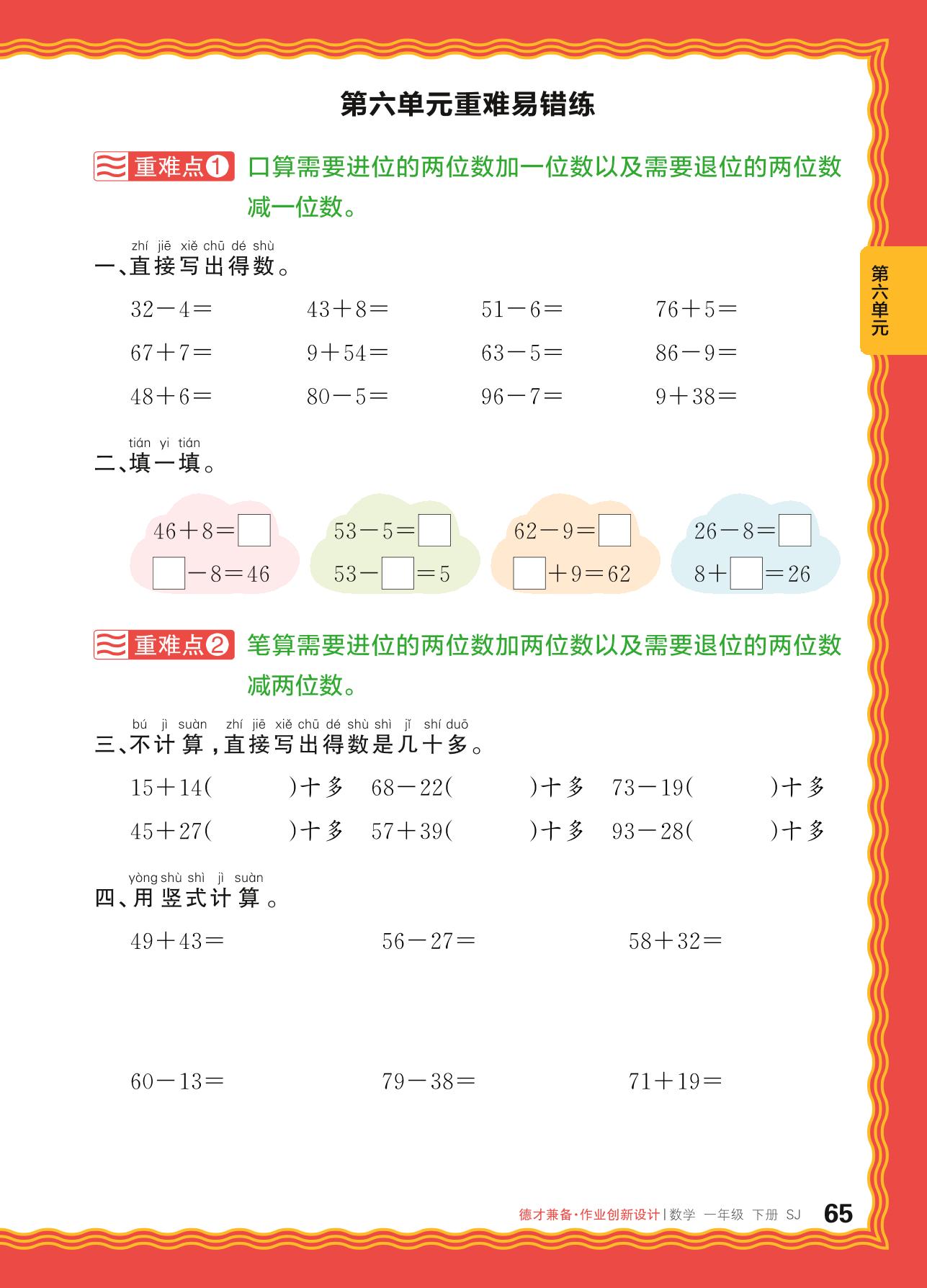 一年级数学苏教版下册专项卷