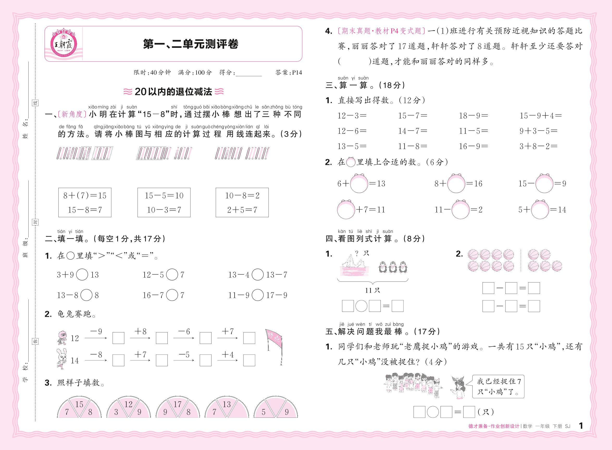 2024春下册一年级数学苏教版 第一、二单元测评卷