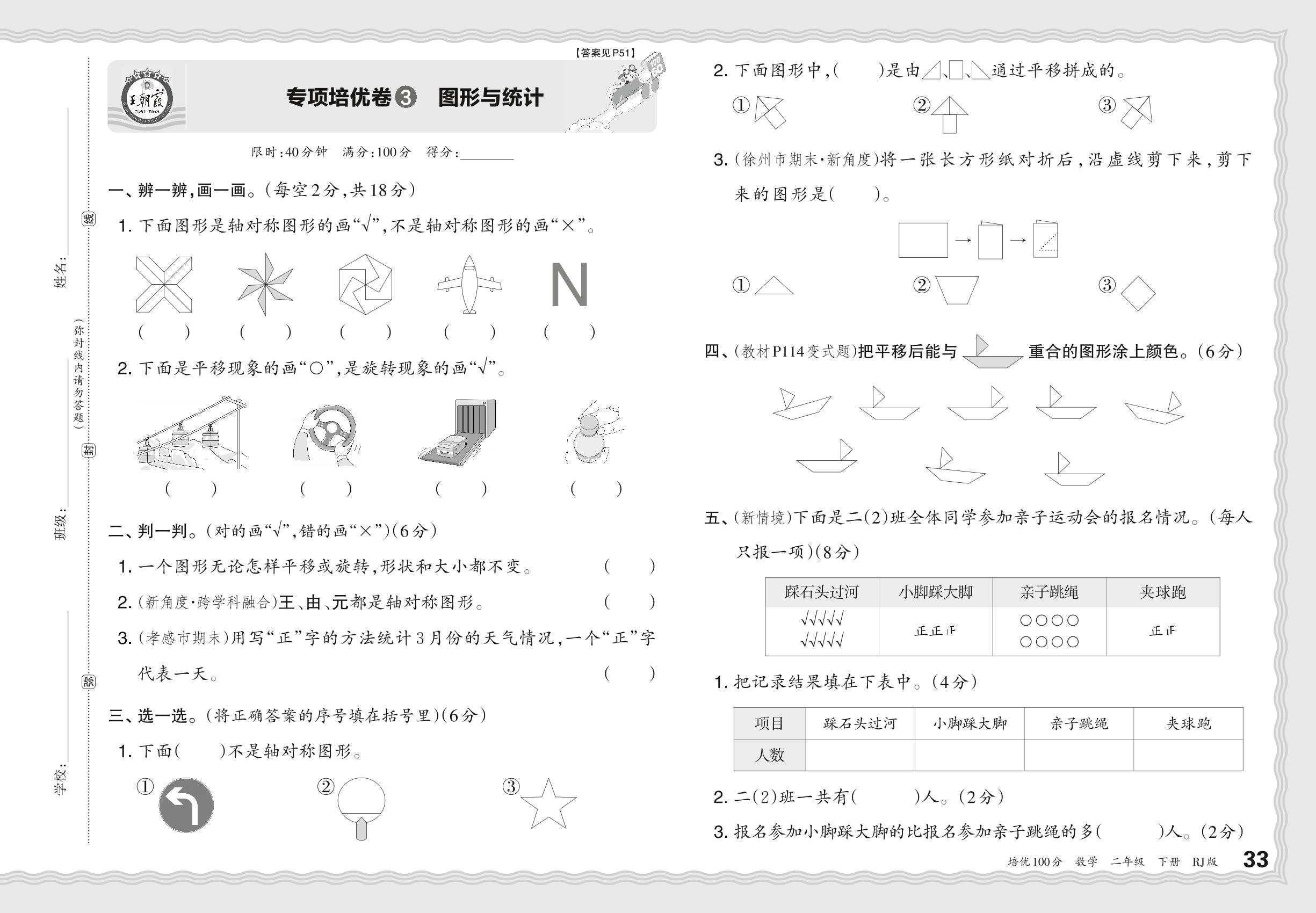 2024春下册二年级数学人教版 期末专项卷PY版·图形与统计【3】