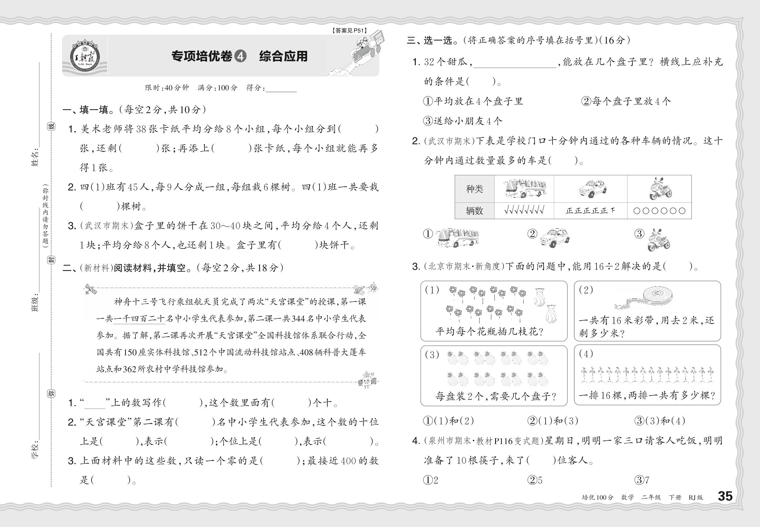 2024春下册二年级数学人教版 期末专项卷PY版·综合应用【4】