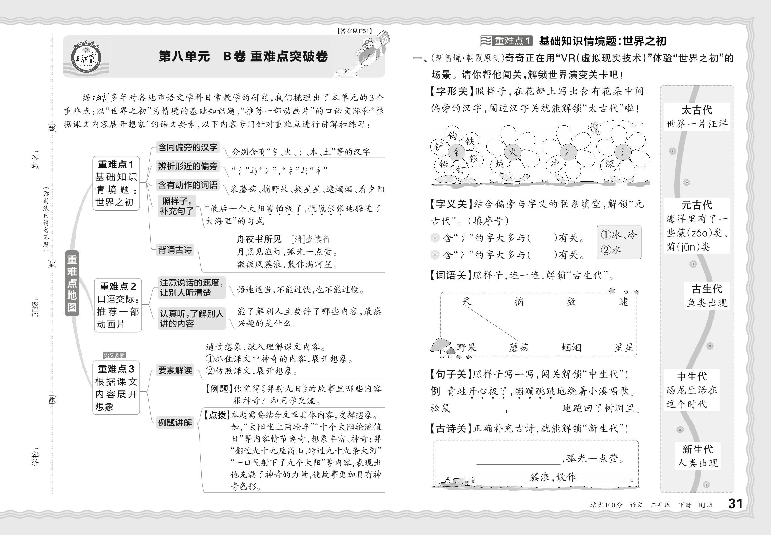2024春下册二年级语文人教版 第八单元 B卷 重难点突破卷
