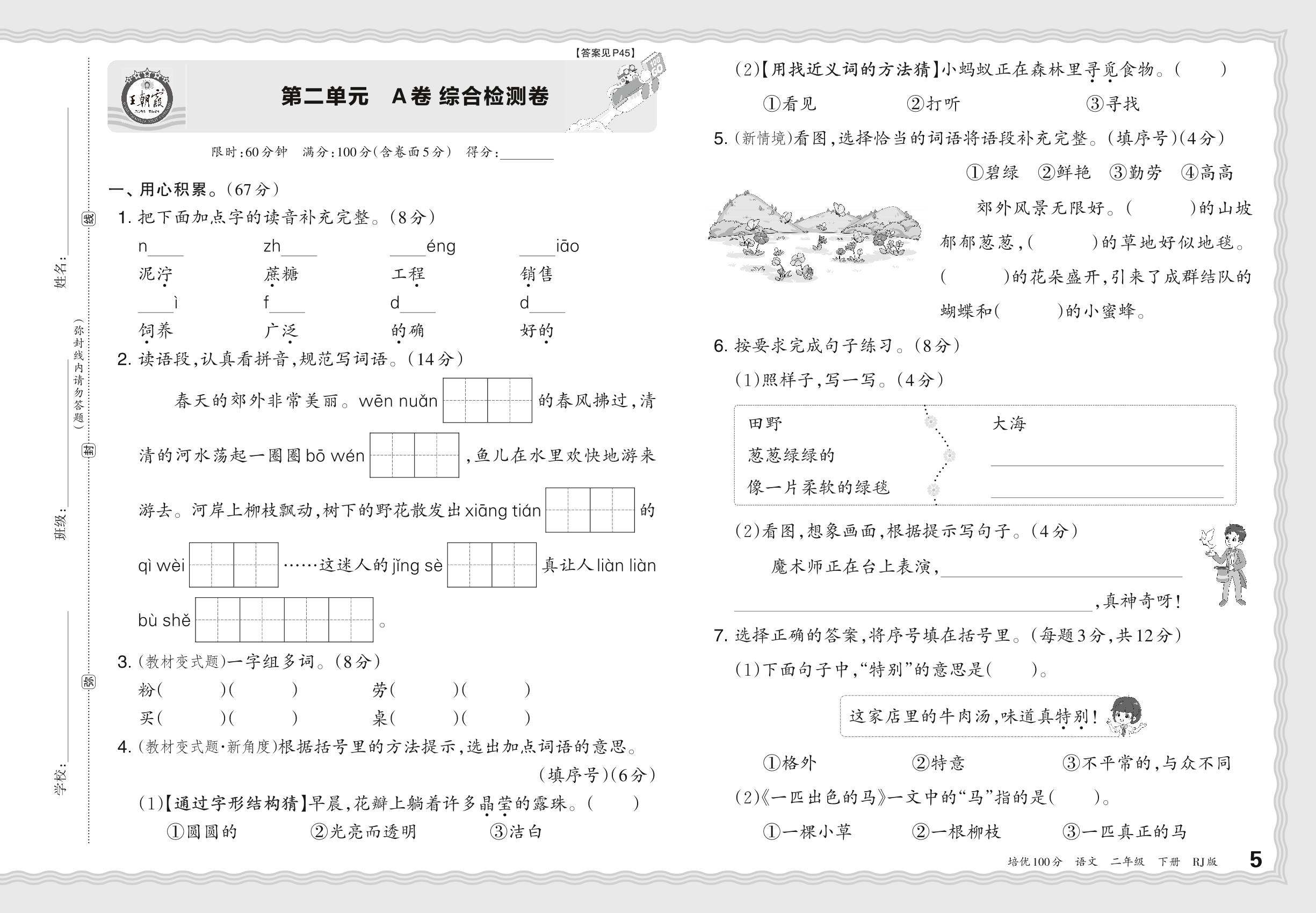 2024春下册二年级语文人教版 第二单元 A卷 综合检测卷