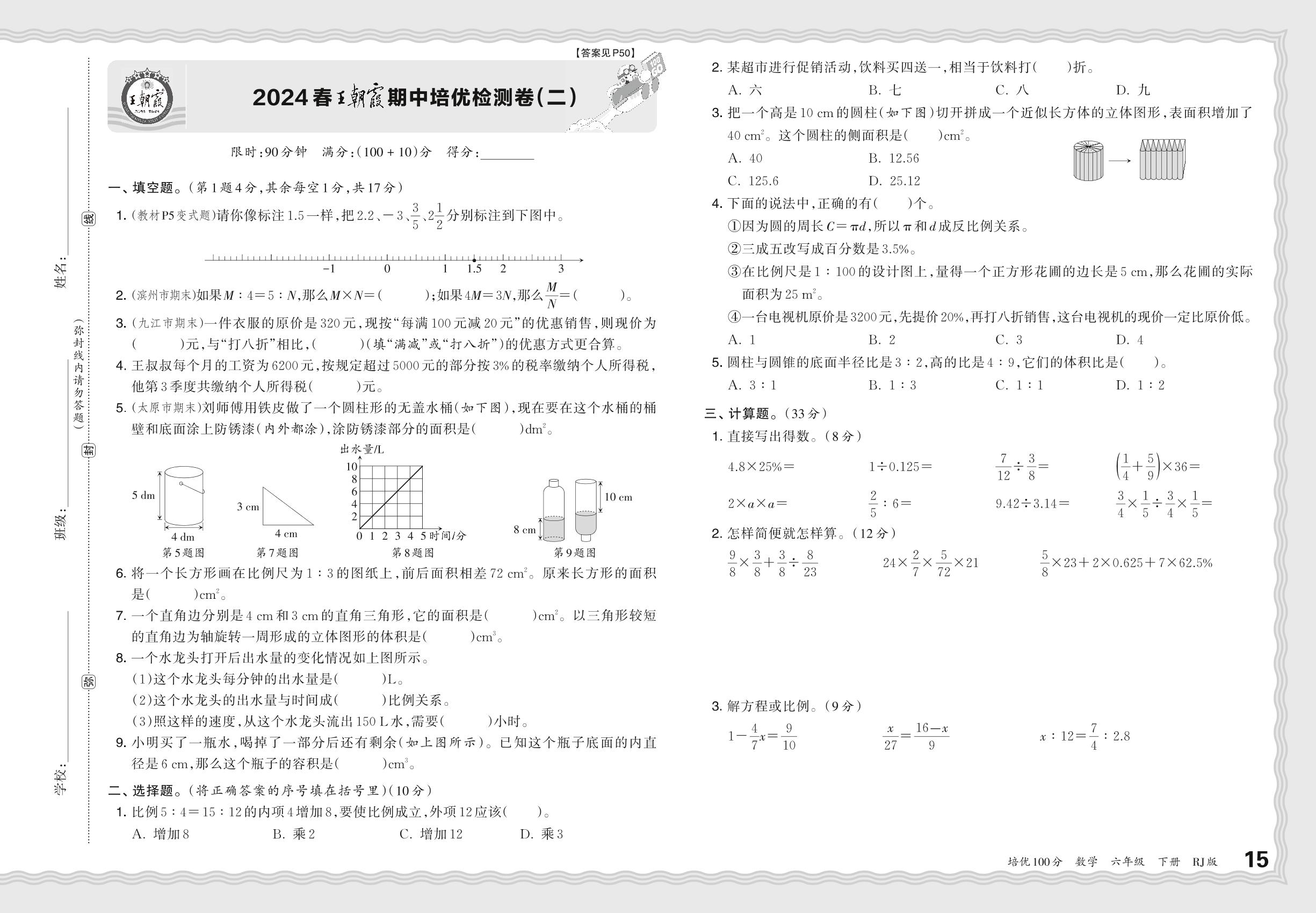 2024春下册六年级数学人教版 王朝霞期中培优检测卷(二)