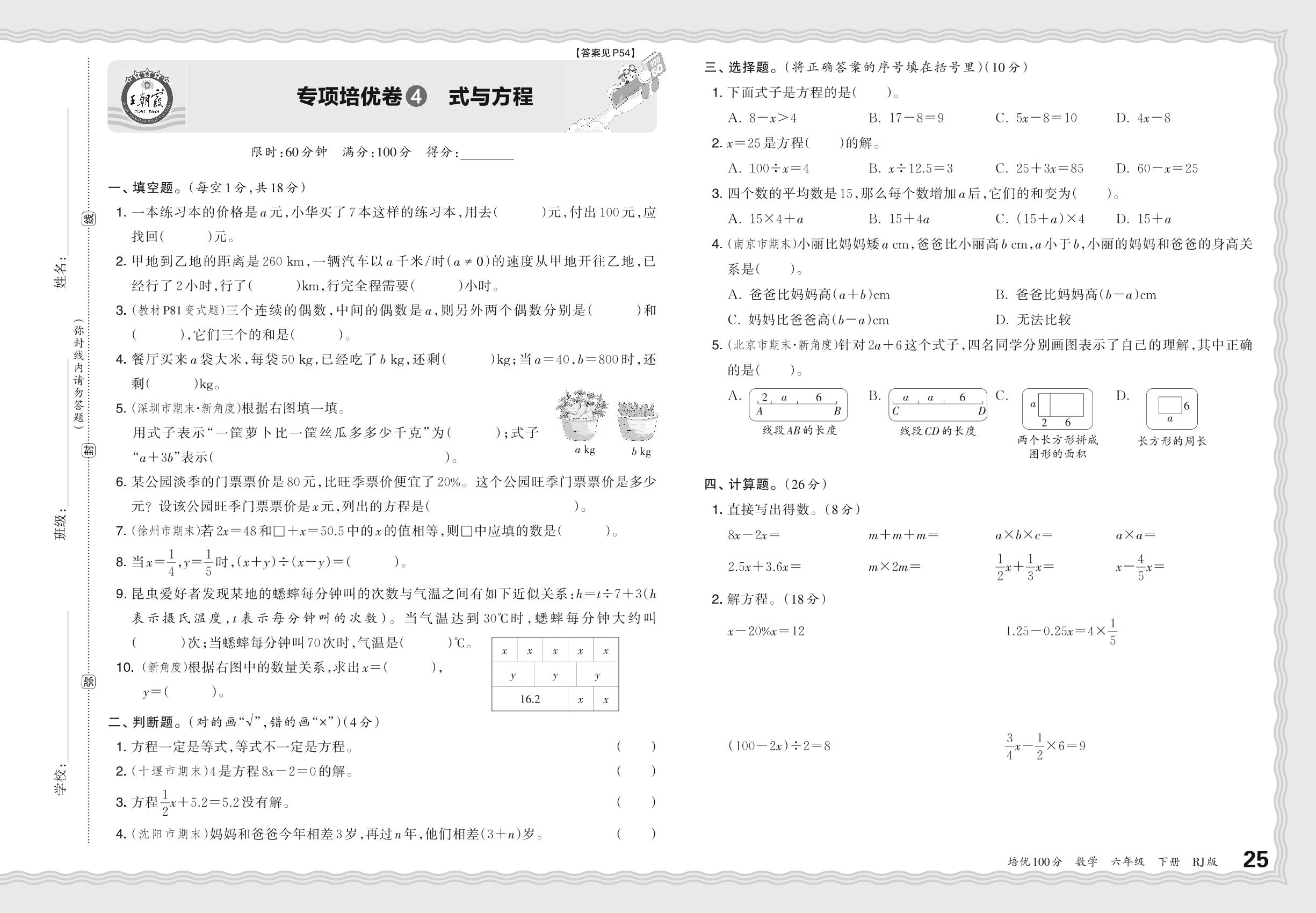 2024春下册六年级数学人教版 期末专项卷PY版·式与方程【4】